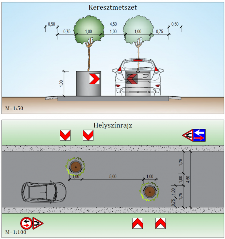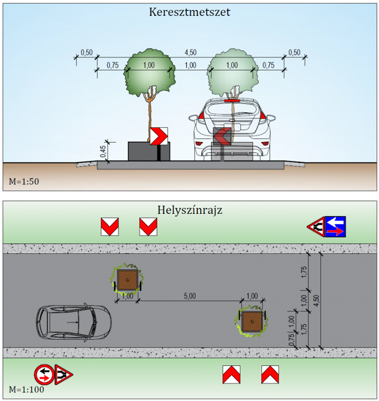 Csőzik László négy alternatívát javasolt: (1) növényláda, (2) kútgyűrű, (3) forgalomterelő oszlopok, (4) kerékvető.