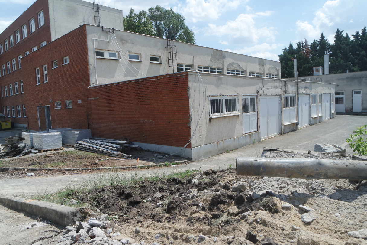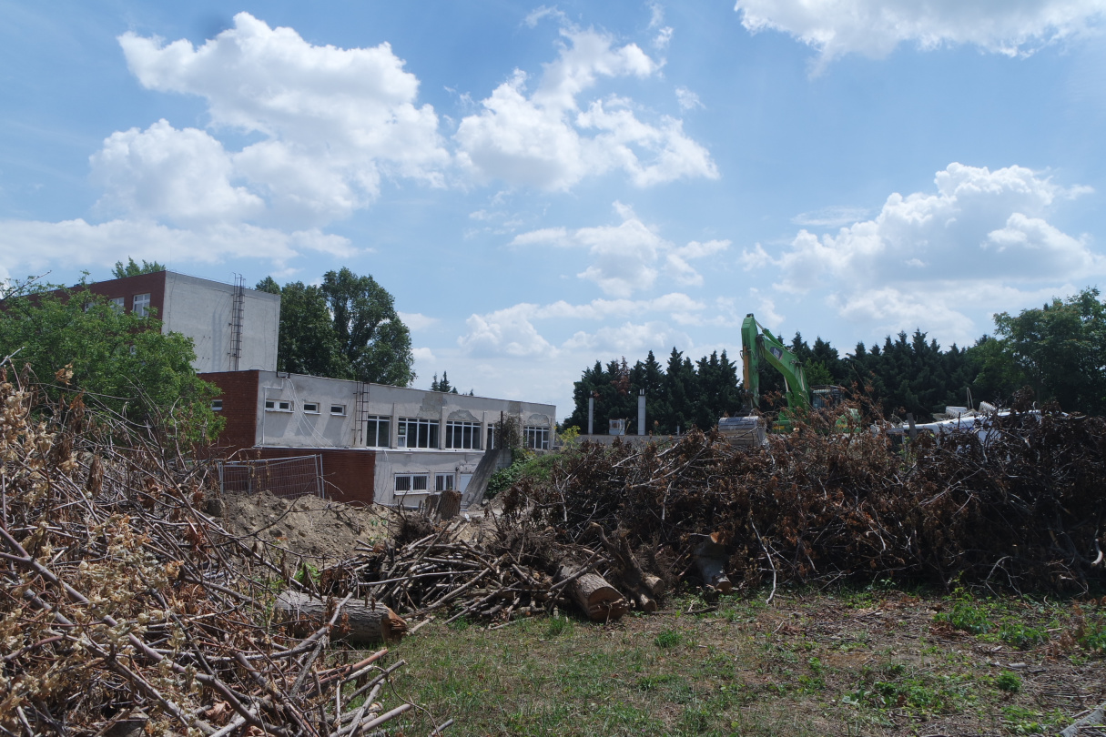 Megkezdődtek a bontási munkálatok is: megszüntették a régi sportpályát, ledózerolták a forfa-épületet, és a nyáron a tanműhelyeket és a tornatermet is lebontják. A műhelyek a főépületbe költöznek át.