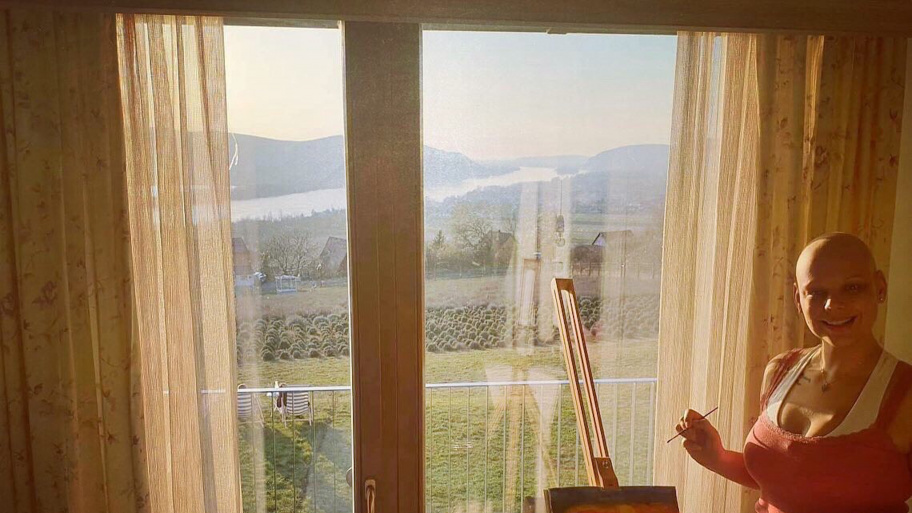 Sok örömöt szerez a festés. A párom a műtét előtt elvitt egy wellness hétvégére, ahol adtak festőeszközöket is a szobához. A sógornőm pedig most vászonnal és festőeszközökkel lepett meg, amelyekkel tudok akvarelleket készíteni, azt is postán küldette el nekem. Teljesen kikapcsol, és annyira nem is megy rosszul.