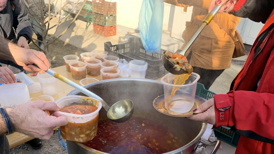 A mai vasárnapon összesen 350 adag babgulyás készült, ebből 120 adagot szállítottak ki házhoz az önkéntesek. Ami pedig megmaradt a gulyásból, az a Szociális Gondozó Központ különböző intézményeibe került a nap végén.
