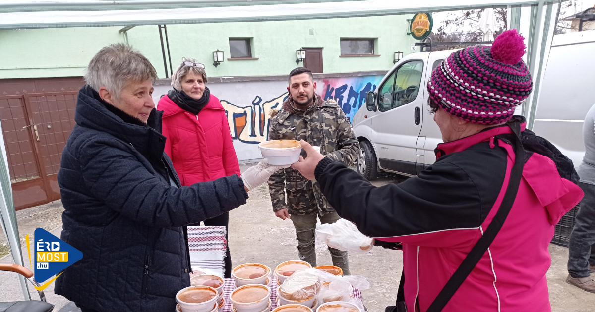 Szeretetlakomára várták az érdieket szerda déltől a Fundoklia téren: babgulyás, meleg tea, kenyér és szaloncukor várta a térre látogatókat. A felajánlást Majlát Csaba tette, aki Asztalos Éva önkormányzati képviselővel és az Érdnyugat Egyesület önkénteseivel rendezte meg az ételosztást.