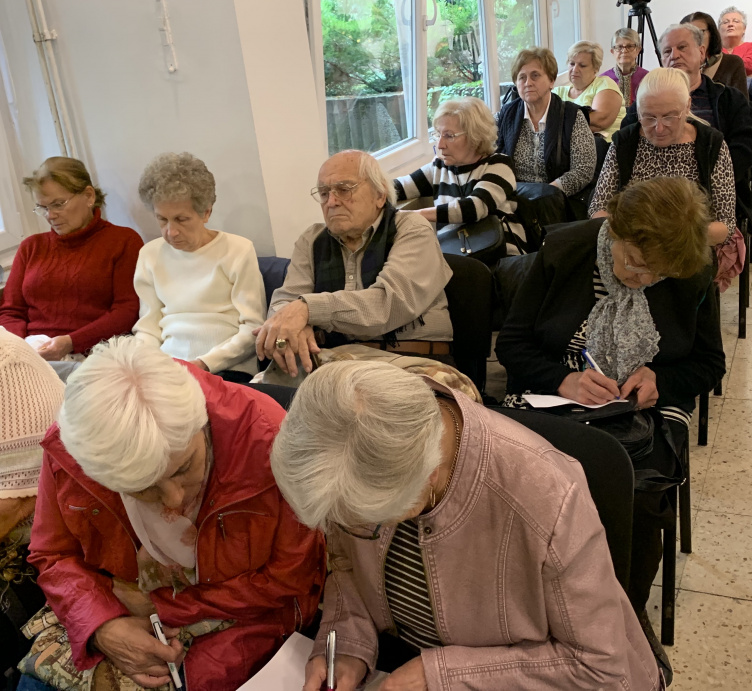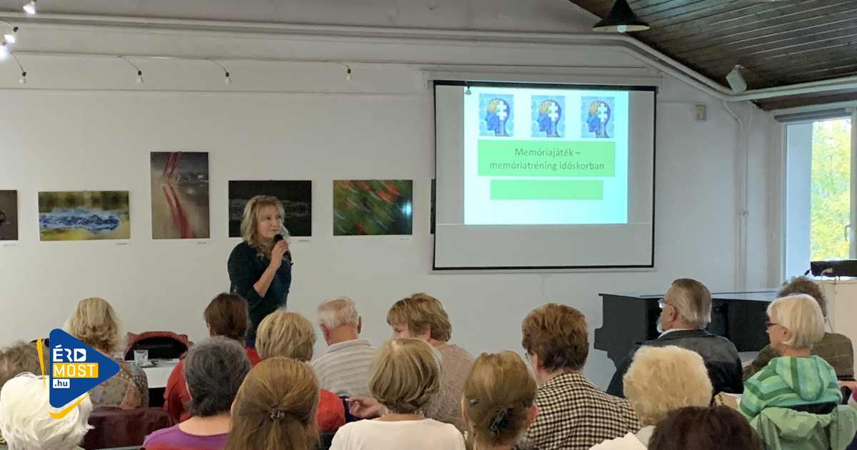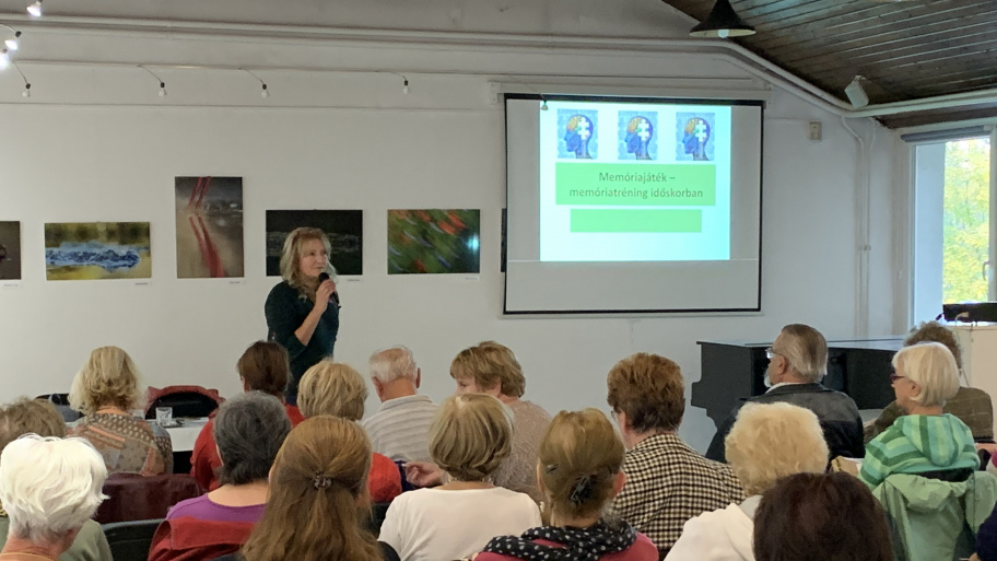 A Szepes Gyula Művelődési Központ megtelt a szépkorúakkal, akik olyan otthon is végezhető gyakorlatokat ismerhettek meg, amik gyorsítják a gondolkodást, fejlesztik a memóriát. Az előadás egyből érdekes és hasznos, otthon is végezhető gyakorlatok bemutatásával indult, voltak szójátékok, illetve régi meséket kellett felismernie az időseknek, majd azt is felidézni, a kivetítő melyik szegletében melyik mese fotója szerepelt.