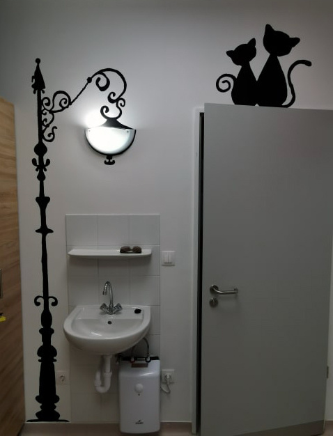 Ezt követően már "csak" festeni kellett. A festék egy korábbi, hasonló akcióból származott - télen ugyanis a Mária utcai rendelőt dekorálták ki az önkéntesek, szintén Gabriella szervezésében.