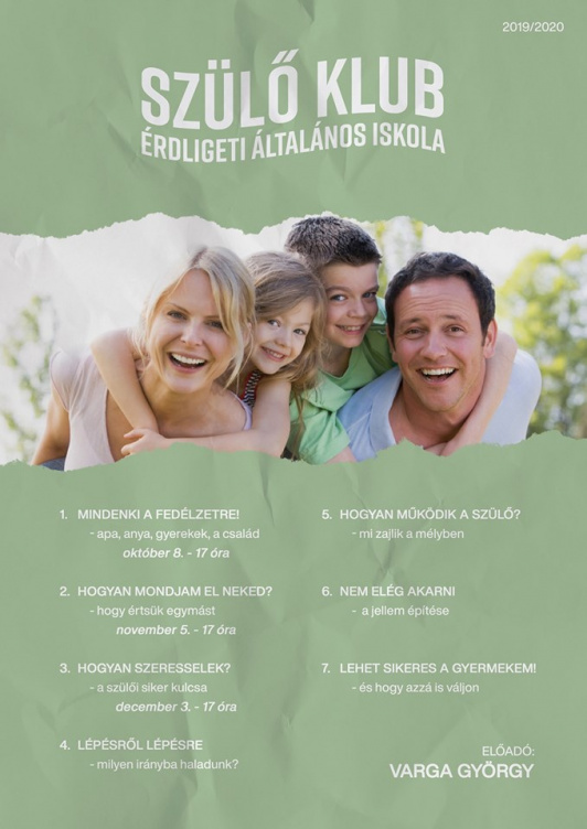 Éppen ezért az idei tematikával elsősorban az alsós diákok szüleinek kívánnak mankót nyújtani. Az előadó szerint ma jóval nagyobb szükség van arra, hogy tudatosan tanuljuk szülőként a gyereknevelést, mint korábban, amikor talán a generációs minták vagy a kulturális hatások miatt ezt ösztönösebben csinálták. Ehhez pedig egy nagyszerű lehetőség a szülő klub, ahol tapasztalatot lehet cserélni egymással, mert itt nem előadásokra, hanem párbeszédre, beszélgetésre lehet számítani. Nem utolsó sorban a közösségépítéshez is jó terepet kínál a klub.