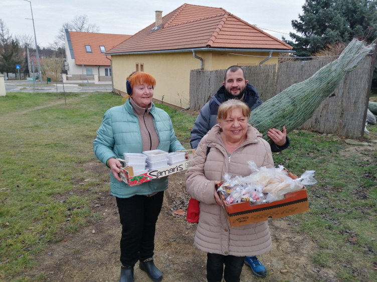 Hétfőn és kedden tartósélelmiszereket, az ünnepi vacsorához szükséges étel alapanyagokat vittek ki a képviselők segítségével, ma pedig székelykáposztát, tiramisut, és karácsonyfát adtak át azoknak az érdieknek, akiknek ezzel segíteni tudtak.