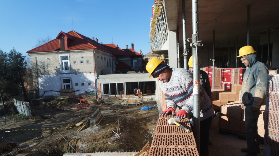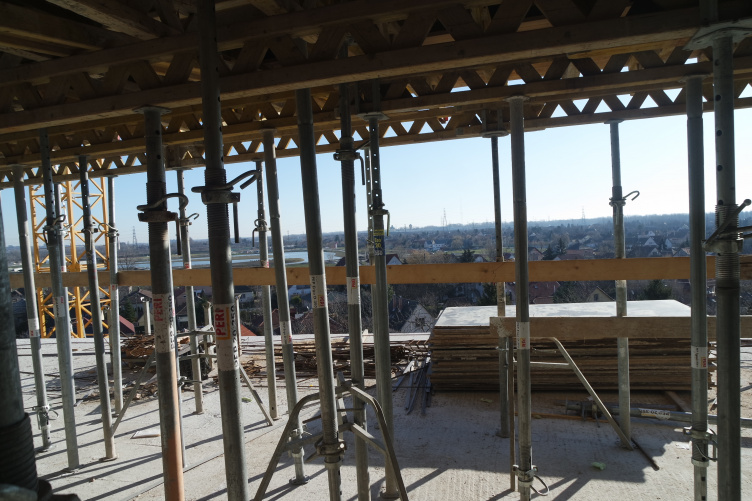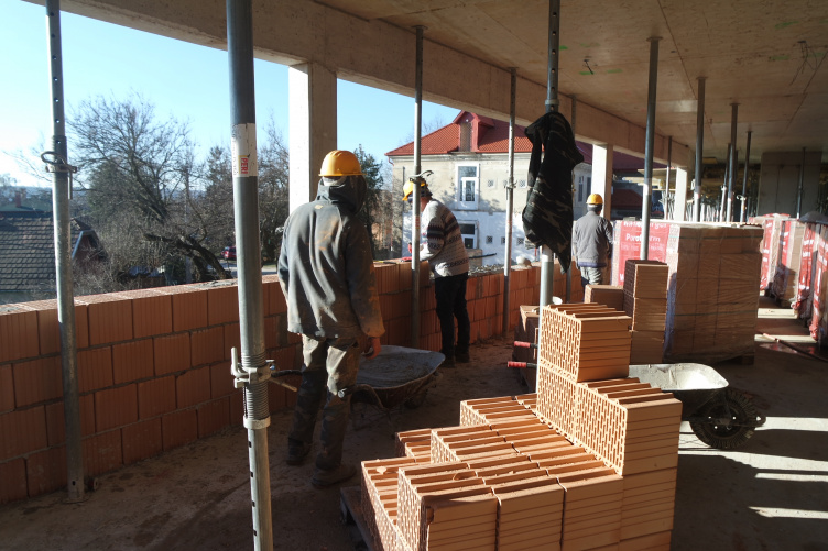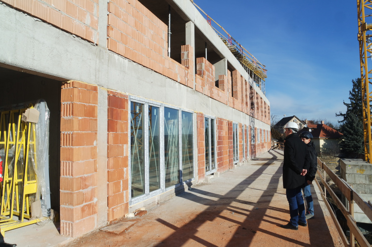– Végigjárva a szinteket, azt hihetnénk, egy épülő négycsillagos szállodában vagyunk; nagyon jó a rálátás a papi földekre, a záportározóra. Komoly, komplex rendezés valósul meg ezen a teraszos fekvésű területen. A beruházást rendben lebonyolítjuk, és reményeink szerint pont határidőre, 2021 derekára átadjuk az épületet. A projekt előkészítése során felmerült számos olyan probléma, amelyet most kell majd elhárítani – például nem terveztek be fürdetőágyat, amely óhatatlanul szükséges az időskorúak ellátásához, és a családok átmeneti otthonánál négy lakóegységet úgy terveztek meg, hogy nem volt bennük vizesblokk. Ez ugyan az előírásoknak megfelel, mégis nehezíti a mindennapi életet, ezért azon leszünk, hogy a vizesblokkokat kialakítsuk. Fentiek mellett legalább három ponton előfordultak nem várt jelenségek. Az új szárnynál a talaj teherbíró képessége nem volt megfelelő – a kivitelezés előtt készített talajmechanikai szakvélemény dacára –, így mintegy negyven centiméter mélyen talajcserét kellett végezni még tavaly nyáron, ami 27 millió forintos nettó költségnövekedést eredményezett, és három héttel késleltette az építkezést.
