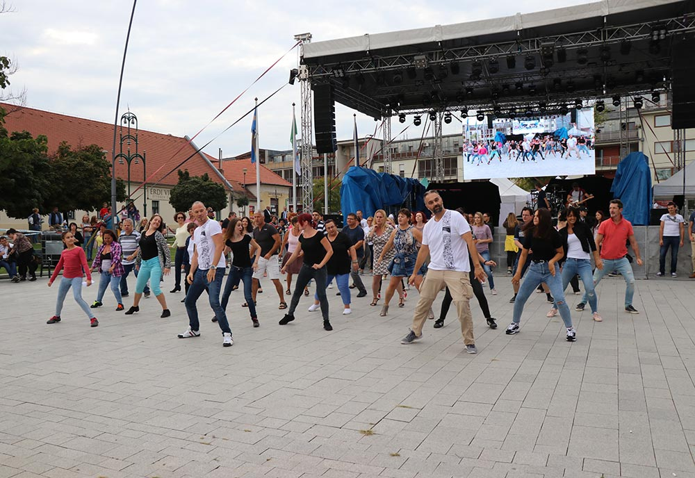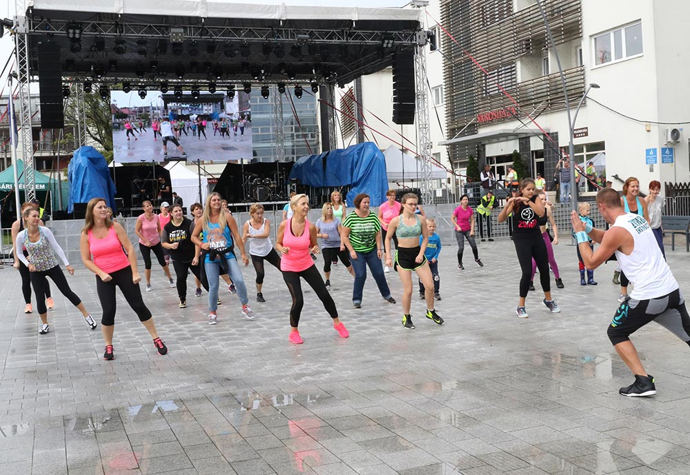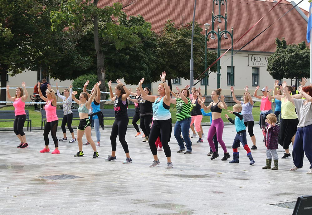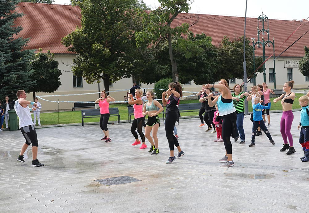 A felnőttek sem maradtak ki a táncból: előbb a zumbások (gyerekek és szüleik) mutatták meg Halász Zsolt vezetésével, hogy milyen is az igazi latinos vérmérséklet, ha beindul a zene. Aztán a salsások - Németh Sándorral, a Karibi Tánc Klub vezetőjével sem bírtak magukkal és temperamentumukkal, mindenkit táncba hívtak előbb a főtéren, később pedig folytatták tovább a street workout pályával szemközti kis területen.