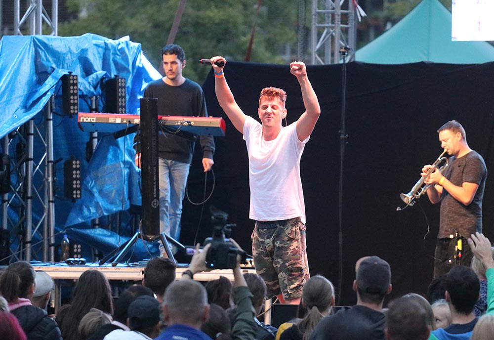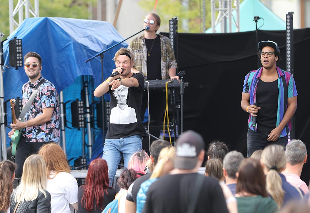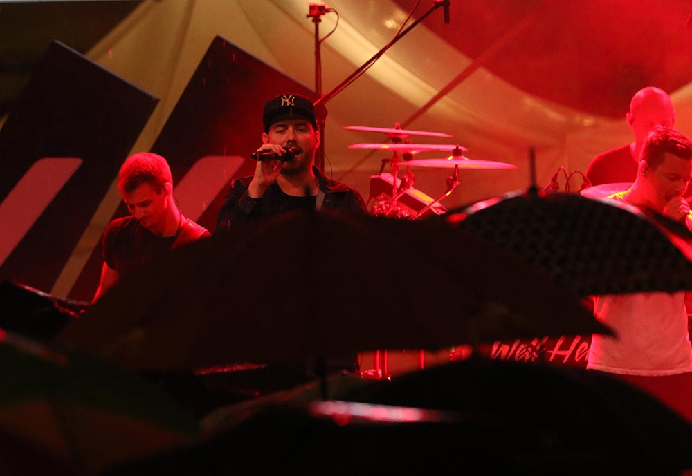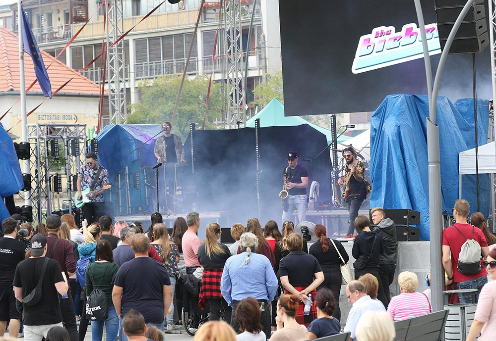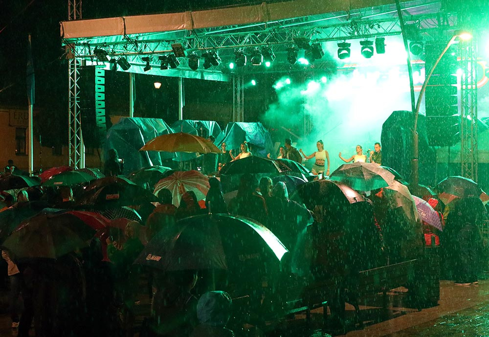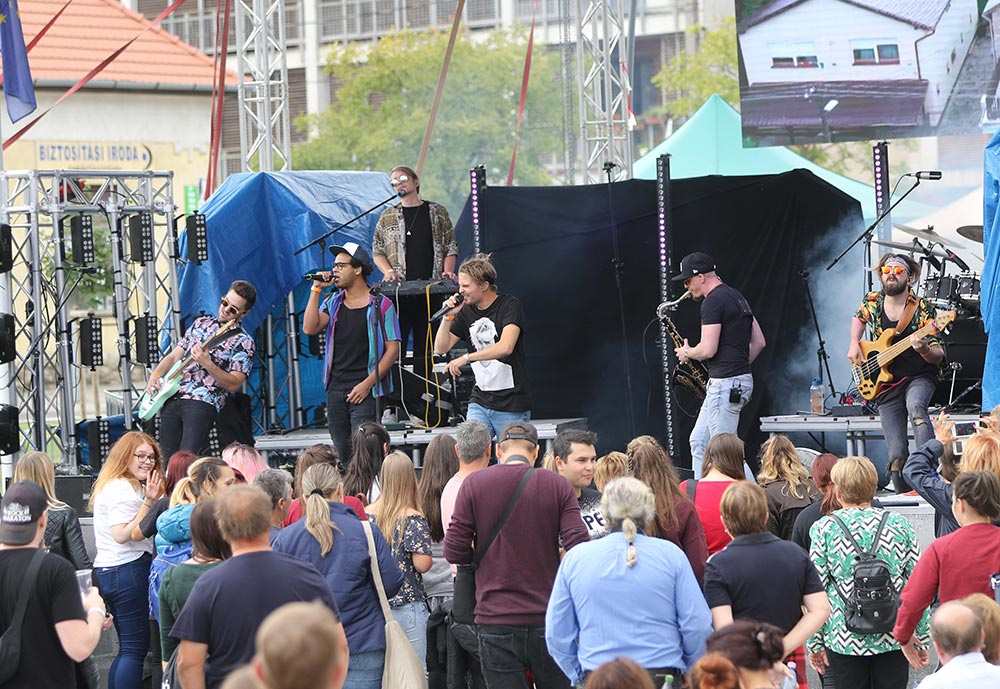 A nagyszínpadi koncertek sora a The Biebers-szel kezdődött, akik olyan energiával és lendülettel játszottak kora délután a félig megtelt érdi főtéren, mintha csak a Sziget headlinerjei, főfellépői lennének éppen. A koncerten az is kiderült, mi volt Puskás Peti kedvenc száma gyerekkorában (Haddaway: What is love), és ők még a napsütésben énekelhették a közönségükkel együtt, hogy Kezeket fel! a Dübörög a ház újrafeldolgozásában. Később, a Wellhello már csak "Esernyőket a magasba!" felkiáltásokkal buzdíthatta a közönséget. De előttük még felléptek a Hősök is. Bár a hiphop formáció, saját bevallásuk szerint, öreg, mint az országút, ez a közönségükön egyáltalán nem látszott. Halott pénzzel közös slágerüket, a Több türelmet például egy fiatal anyuka kicsi gyermekeivel az oldalán énekelte teljes hangerőn (és átéléssel) előttem, a főtéren. És talán azt is mindenki aláírja, aki ott volt a szombati koncertjükön, hogy nagyon jól áll nekik Szélinger Anna, meg az ő hangja. A Hősök már csak nosztalgiáztak a nyárról Kelemen Kabátban és Eckü Nyári gyerekekével, a koncert közben megint elkezdett esni az eső, ami immár #sohavégetnemérősnek bizonyult a tűzijáték és aztán a Wellhello koncertje alatt is. De szombaton este ez senkinek sem vette el a kedvét attól, hogy a főtéren maradjon.