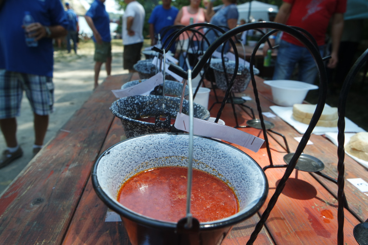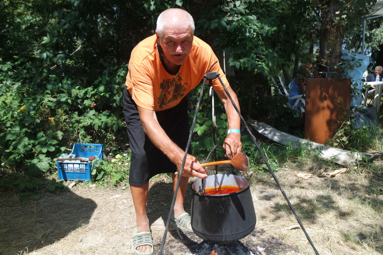 Ilyenekből azért nagyon kevés akadt a körülbelül százötven látogató között. A legkisebb gyerekek is kanalazták a közös kondérban főzött halászlét, amit a tavalyi verseny győztese főzött, mintegy kétszáz adaggal. Természetesen ez a leves is indult a megmérettetésen.