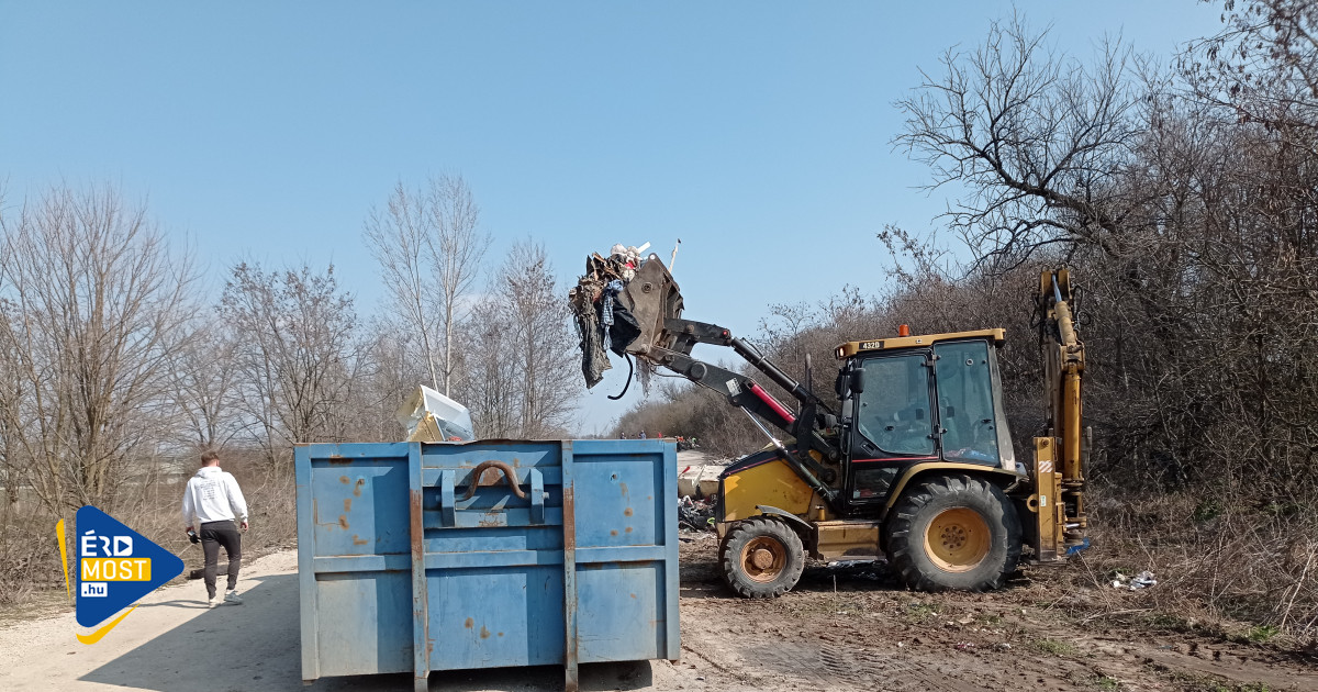 Így nézett ki a 6-os úthoz közeli helyszín szerdán, illetve szombat délelőtt, miután a gép megkezdte a takarítást.