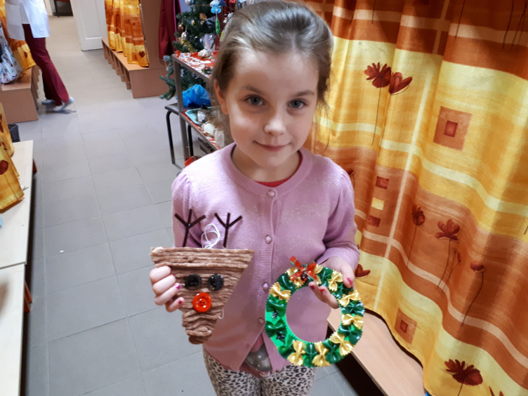 Díszek és ajándékok kerülnek ki sorra a kicsi és a nagy kezek munkájának gyümölcseként. A spatulák és a pamutfonál találkozásából itt rénszarvas születik, a masnitésztát pedig aranyszínűre festik, és egy kis ragasztás után kész is a csodaszép ajtókopogtató. „Nagyon egyszerű dolgokkal lehet az ünnepet meghitté tenni”, mondja Pócsiné, és ezt a látottak alapján készséggel el is hiszem.