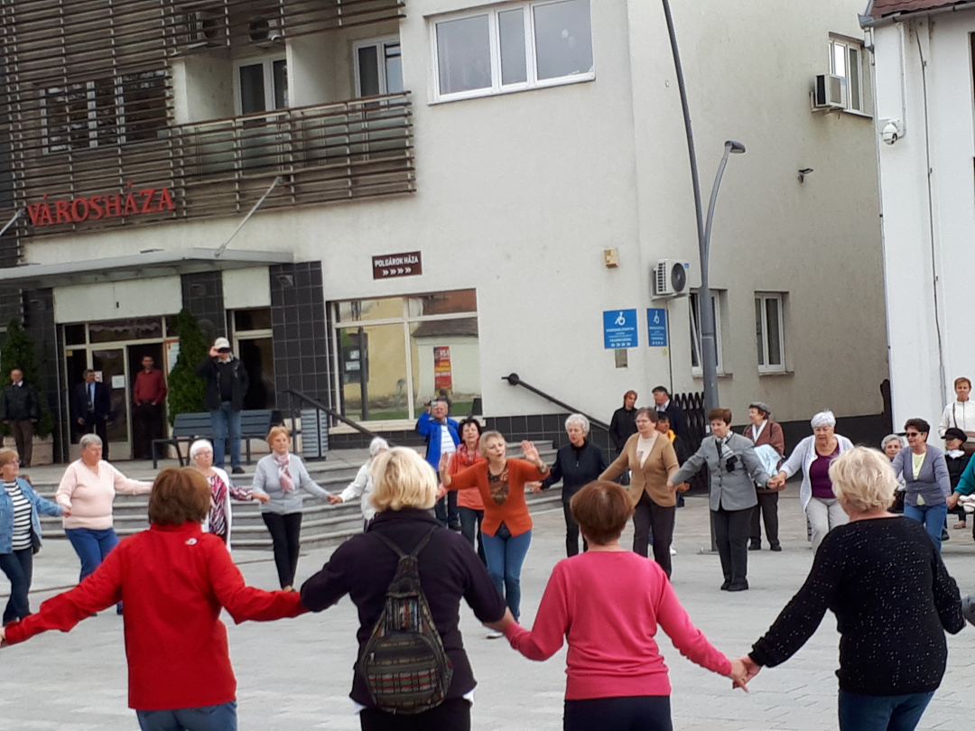 A hétfőn a tánc világnapja alkalmából bemutatott produkcióban volt tangó, kóló, magyar csárdás, felhangzott a Radetzky-induló, a Nemcsak a húszéveseké a világ és a Mamma Mia! is. A bemutató pedig olyannyira jól sikerült, hogy a nézelődők közül is sokan beálltak a szép korúak közé örömtáncolni.