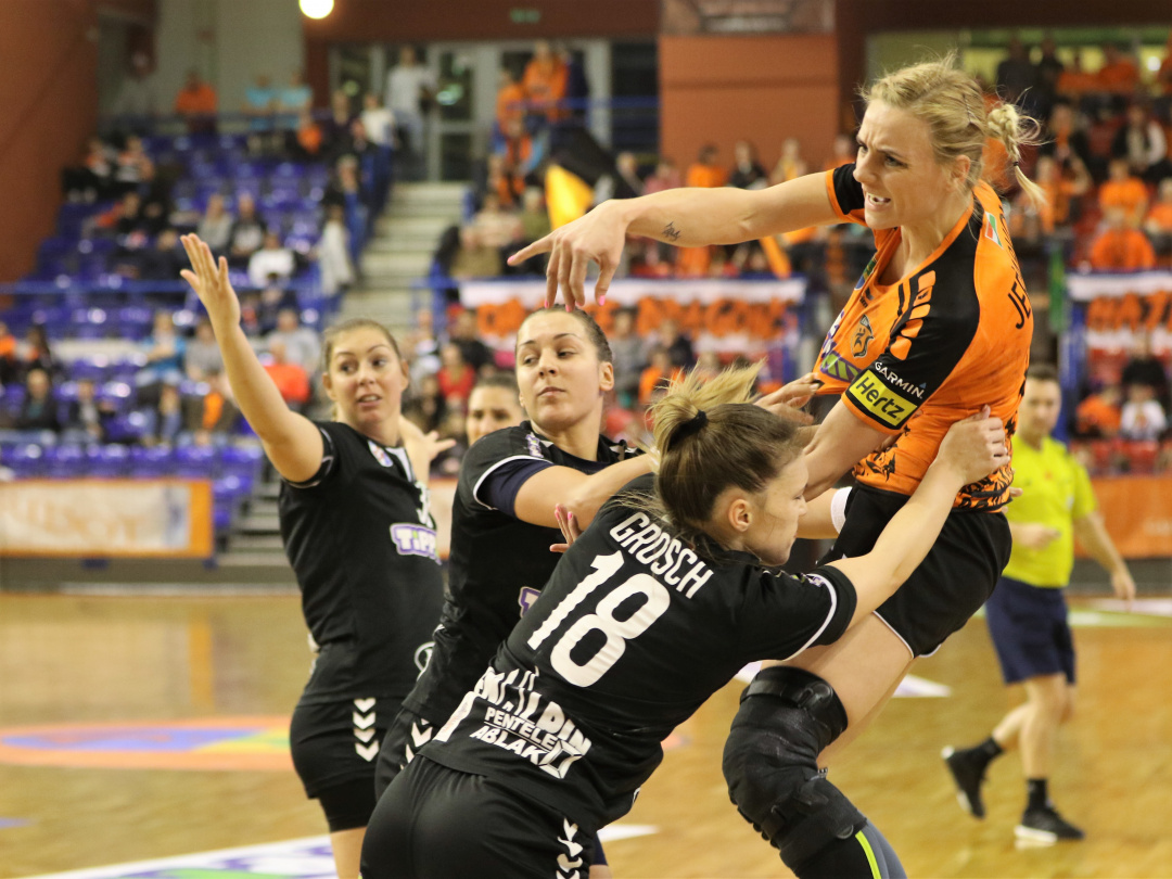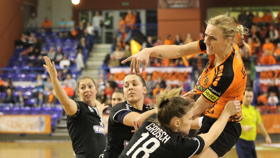 De a foghíjas keret sem szegte kedvét a vendégeknek, akik Szekerczés Luca hatodik góljával a 24. percben kettővel vezettek (12–14).
