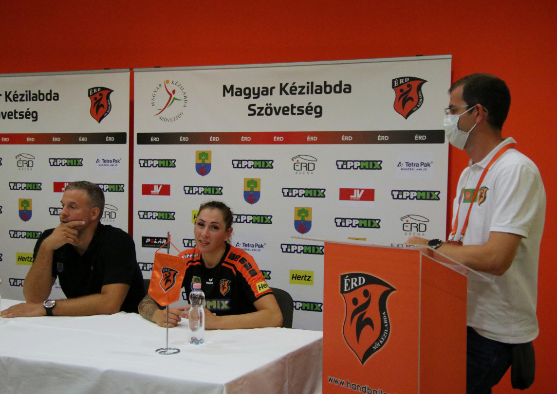 Fél év után először hangzott fel újra az ÉRD Arénában az érdi induló a lelkes szurkolótábor előtt. Újra szóltak a dobok, lengtek a zászlók, majd megszólalt a mérkőzés kezdetét jelző sípszó. Walfisch talált be elsőként, majd a 6. percben már 4-2-re ment az ÉRD. A félidő derekához közeledve Mézes Laura góljával először vezetett négy góllal a hazai alakulat, ekkor 10-6 állt az eredményjelzőn, azonban egy jól sikerült időkérést követően egyre zárkózott a vendégcsapat. A 21. percben Király Réka gólját követően ismét három volt közte, ez az előny pedig kitartott a szünetig, így 17-14-es hazai vezetésnél mehettek pihenni a felek.