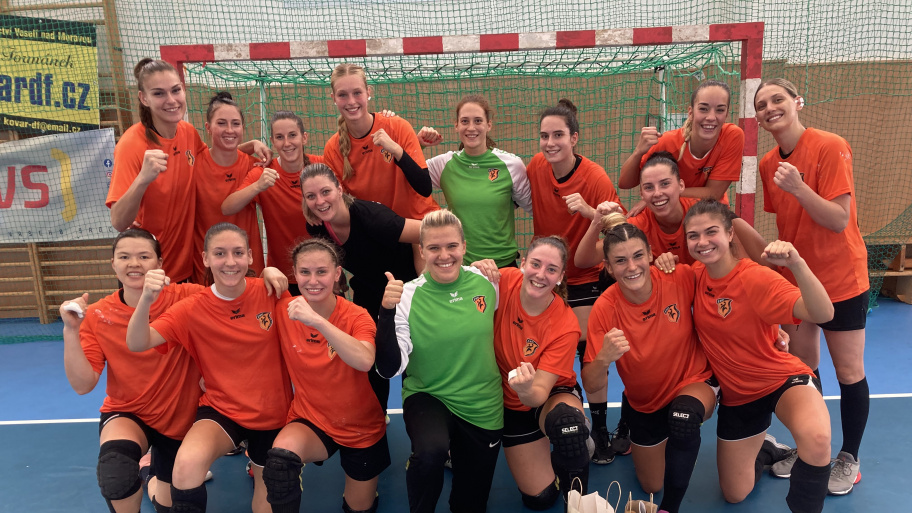 Horváth Roland együttese a házigazda HK Hodonín ellen az utazás és érkezés napján is könnyedén, 39–13-ra győzött a hatcsapatos csehországi nemzetközi tornán, melytől végül az északmacedón Kumanovo visszamondta a részvételt, mert koronavírus-fertőzöttet találtak a csapat háza táján. A nyitómeccsen elért kiütés után a lengyel Korona Kielce sem jelentett különösebb akadályt Kopecz Barbaráéknak, akik viszonylag szoros félidő (11–16) után a másodikban állva hagyták ellenfelüket és simán nyertek (18–36).