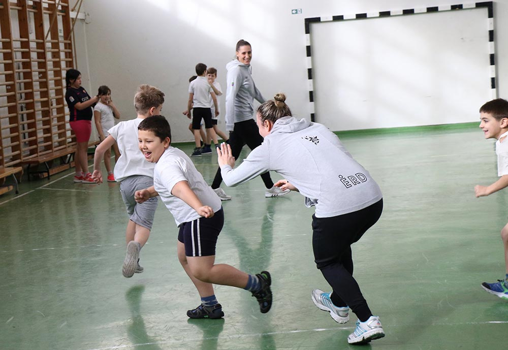 Tizenhárom térségi iskolába látogattak el az ÉRD női kézilabda csapatának játékosai. A felnőtt NB I-es kézilabdázók a Suli Kézilabda Utánpótlás Programban részt vevő intézmények óráin vettek részt. A napokban a profi sportolók a térség nyolc iskolájában tettek látogatást. Az Érd Tv a Teleki Sámuel Általános Iskolában forgatott. Az egymás közötti találkozón Krpezs-Slezák Katarina ismét kitett magáért, hiszen két gólt lőtt az új szerepkörben bemutatkozó Jelena Lavko kapujába, ám a felek végül igazságos 5-5-ös döntetlent játszottak.