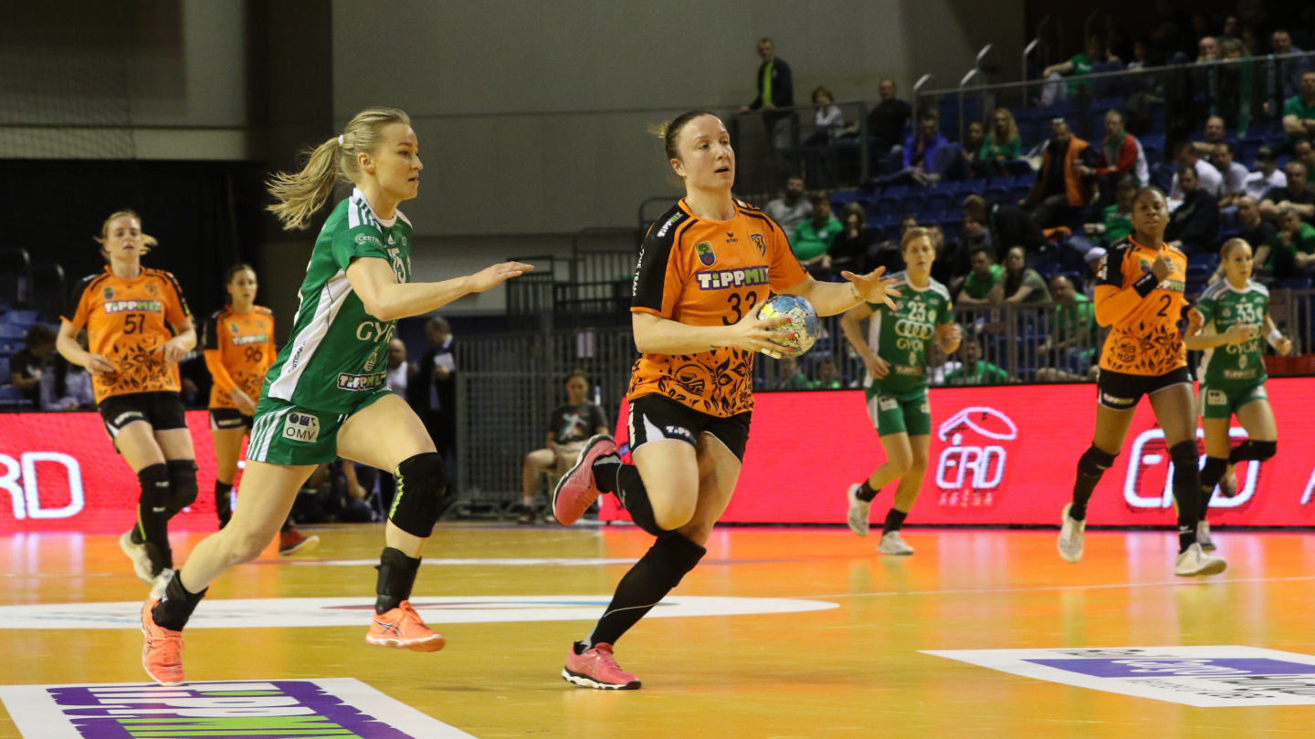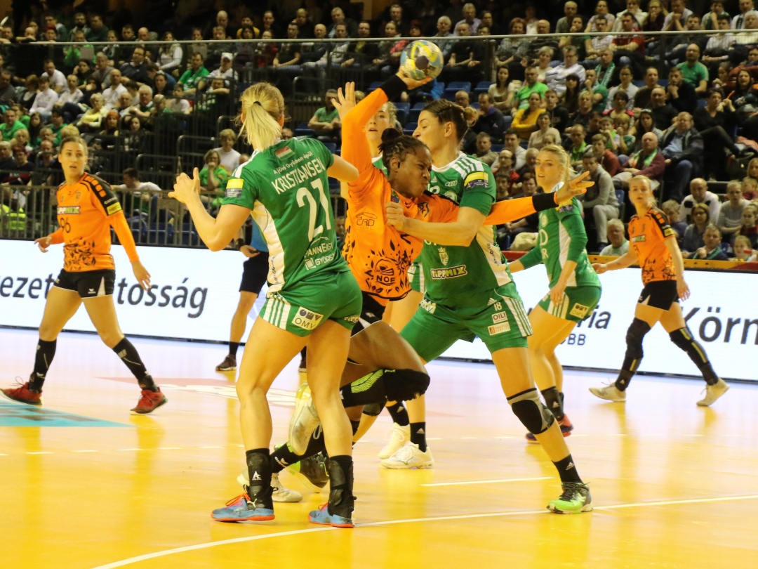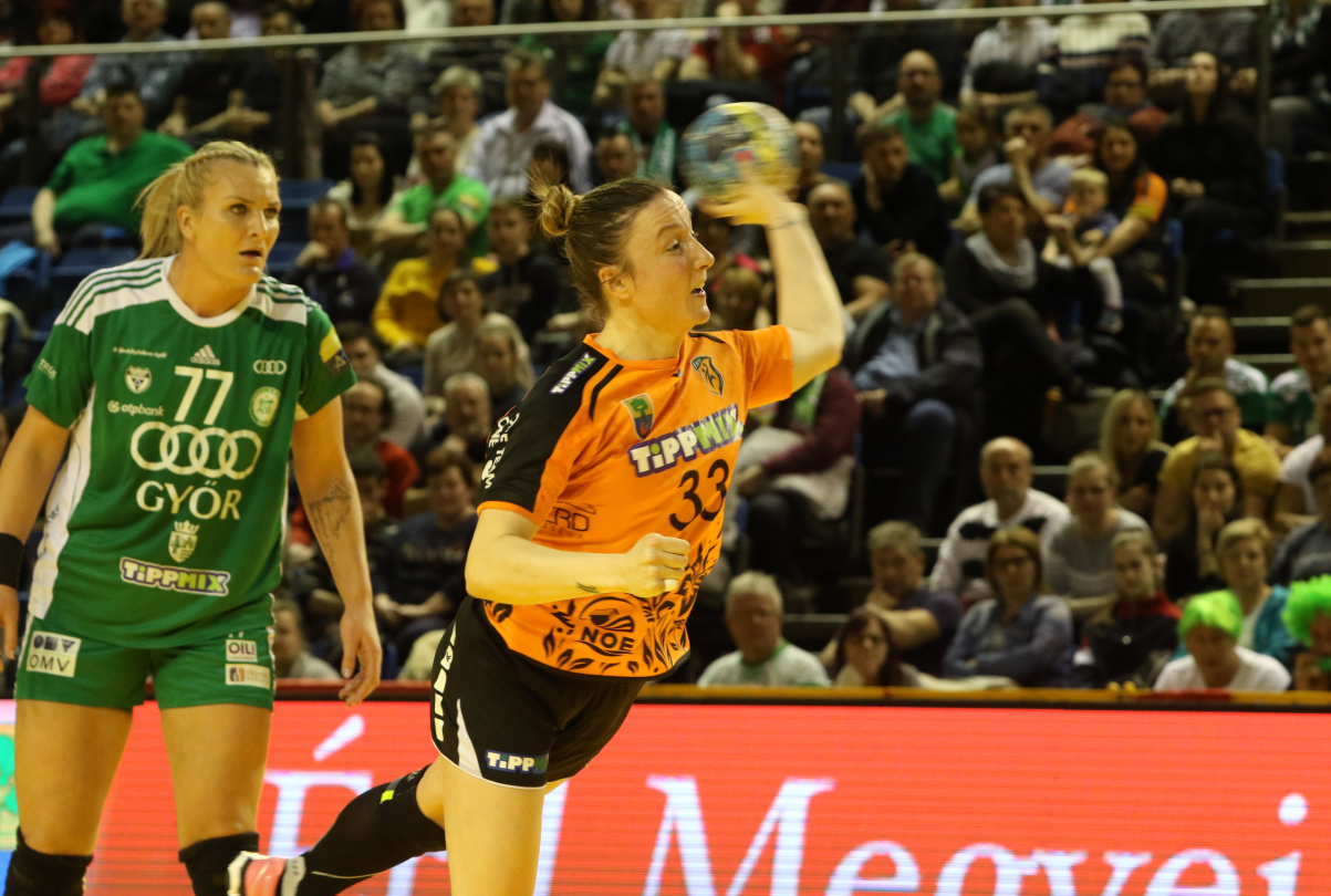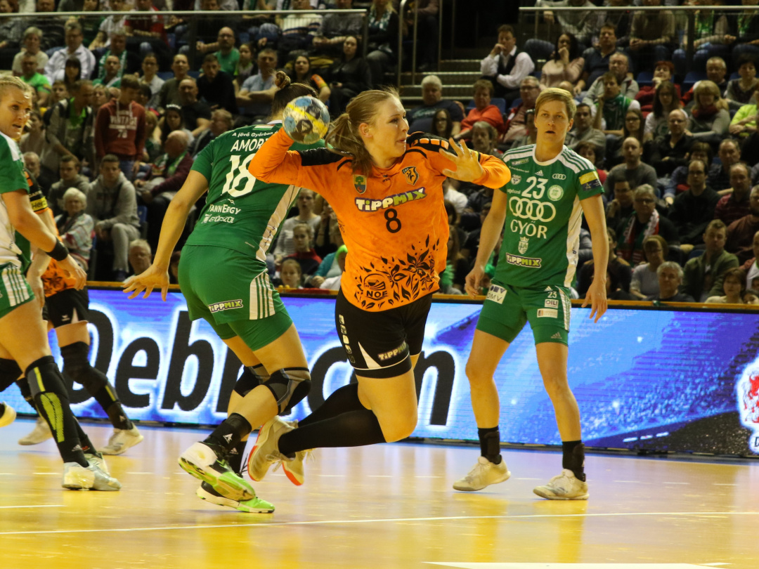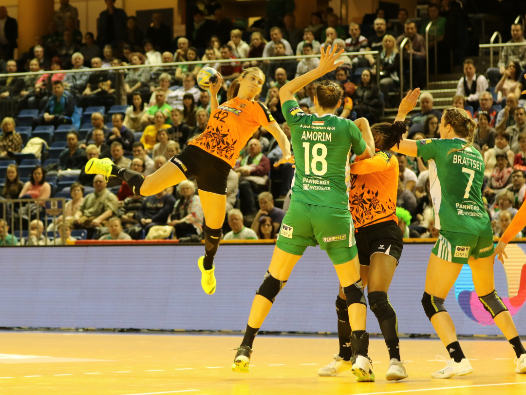De hiába például Markéta Jerábková szemfüles labdaszerzése és gólja, a Győr tizennégy perc játék után már tíz gólnál járt, remek védekezésén nehezen talált rést Szabó Edina csapata (6–10). Ezt követően azonban a cseh balátlövő vezérletével és a feljavuló védekezésnek köszönhetően kettőre olvasztotta hátrányát a narancsmezes együttes (14–16). A szünetre mégis ötgólos előnnyel vonultak a zöld-fehérek (15–20).