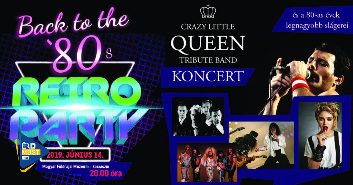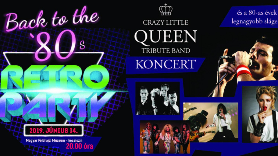 A Retro Paty- Back to the 80's a Földrajzi Múzeum kocsiszínjében lesz június 14-én este. 20 órakor kapunyitás, 21 órától a Crazy Little Queen Tribute Band zenél, majd következik a hajnalig tartó buli a 80-as évek legnagyobb slágereire.