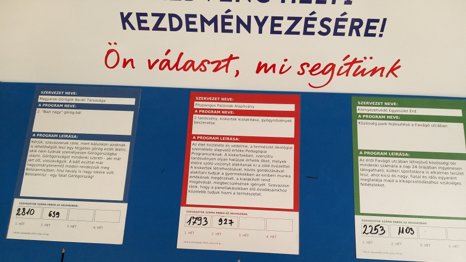 Az áruházlánc évente kétszer ír ki pályázatot, amelyben a szakmai zsűri által kiválasztott három projekt mérheti össze népszerűségét a vásárlók között, akik zsetontokkal szavazhatnak egy-egy ügy mellett. Az Érdi Környezetvédő Egyesület másik projektje, a Tőzike tanösvény fejlesztése korábban harmadik helyezést ért el egy ugyanilyen versenyen, az akkor nyert 100 ezer Ft-ból készült természetvédelmi és információs táblákat a hetekben fogják kihelyezni Ófaluban.