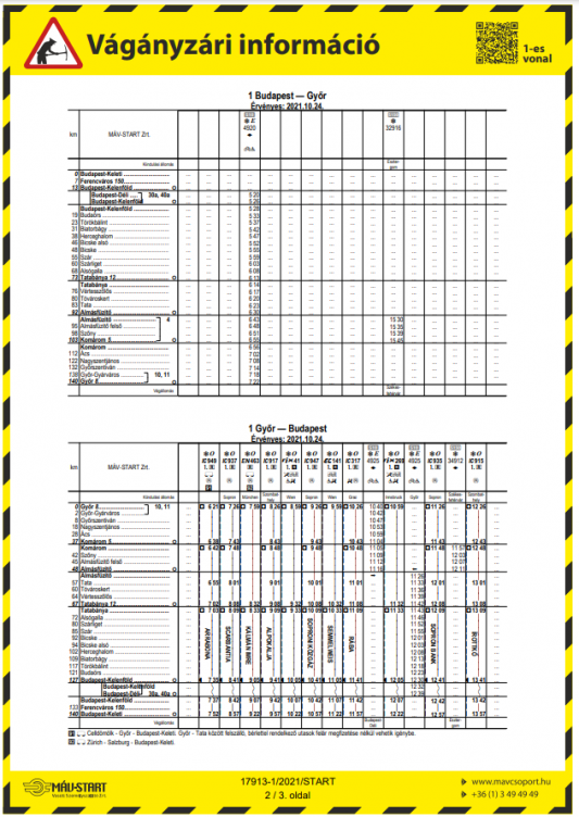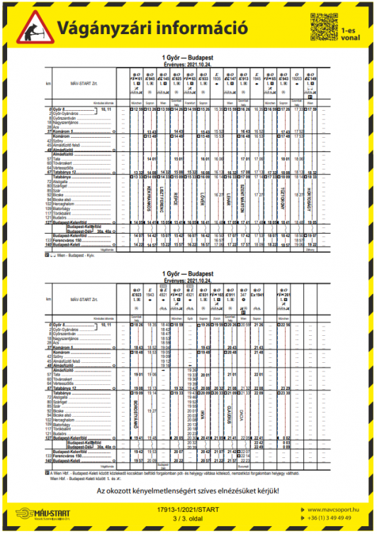 A MÁV-Start Zrt. tájékoztatása szerint október 24-én Almásfüzitő felső–Komárom-Rendező állomások között pályakarbantartási munkálatokat végeznek, emiatt az 1. sz. Budapest–Hegyeshalom vasútvonalon közlekedő vonatok módosított menetrend szerint közlekednek.