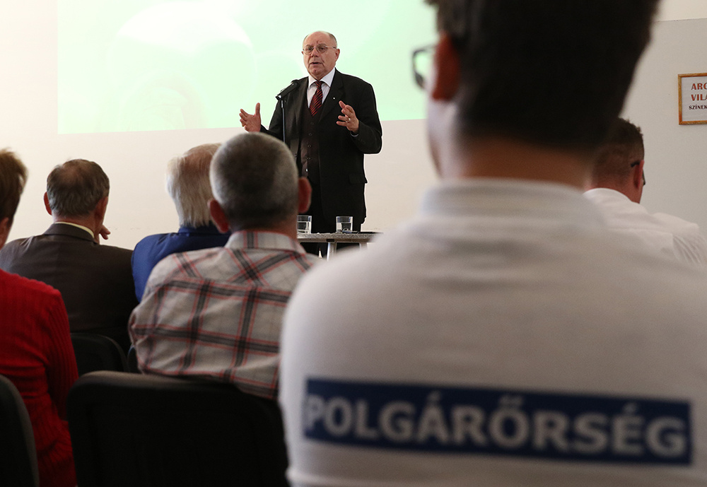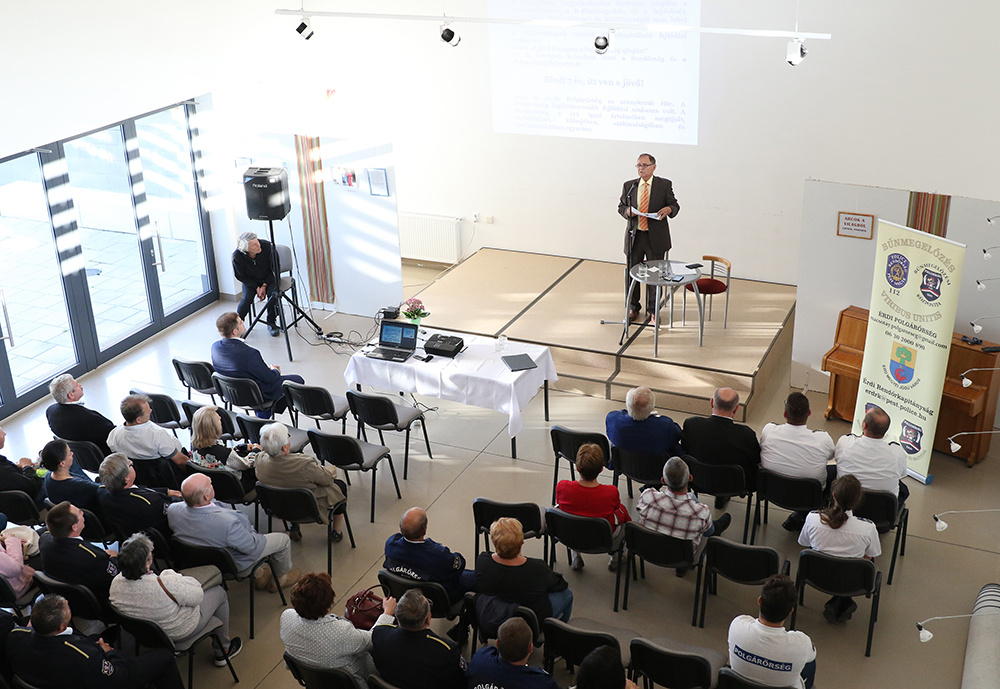 Dr. Túrós András, az Országos Polgárőr Szövetség elnöke előadásában kifejtette, hogy Magyarország a 15. helyen áll a biztonság tekintetében és ebben a rendőrség mellett az önkéntes polgárőröknek is nagy szerepe van. Mint mondta, a polgárőrök fő feladata a közbiztonság védelme és a bűnözés megelőzése. Az OPSZ elnöke röviden bemutatta a polgárőrség indulását, megújulását, majd kiemelte, hogy a polgárőröknek nagy szerepe van abban, hogy az emberek biztonságérzete az elmúlt években nőtt.