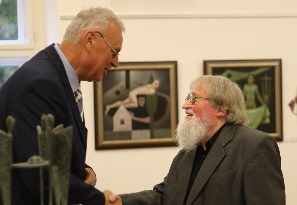 – Tiszteljük a tehetsége okán, mert olyan ember ő, akire azt szokás mondani: isten áldotta tehetség. Manapság sokan kísérleteznek, hogy művészek legyenek, könnyű is akár nagy nyilvánosság előtt bemutatni alkotásokat a közösségi média felületein. De Eőry Emil nem a like-októl lett művész és ismert, festményei és szobrai, kiállításai, köztéri alkotásai mutatták meg a tehetségét. Én, nem lévén szakember, mint befogadó, mint nagyon régi ismerős tudom őt köszönteni 80. születésnapján azzal a meggyőződéssel, hogy amit befogadunk szobraiból, festményeiből, azáltal mi is többek leszünk, de a világ is jobb lesz e művek által – mondta a polgármester.