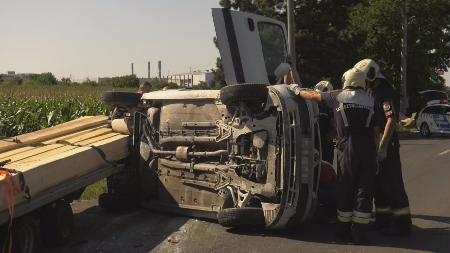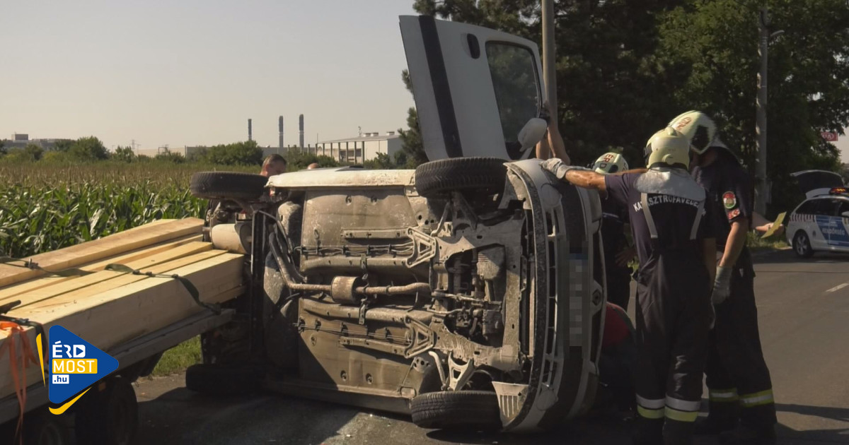 Egy kisteherautó és egy személygépkocsi karambolozott az Ercsi úton. A személyautó az oldalára borult. A másik járműből a műszaki mentést végző érdi hivatásos tűzoltók feszítővágóval szabadítottak ki egy embert, majd átadták a mentőknek.