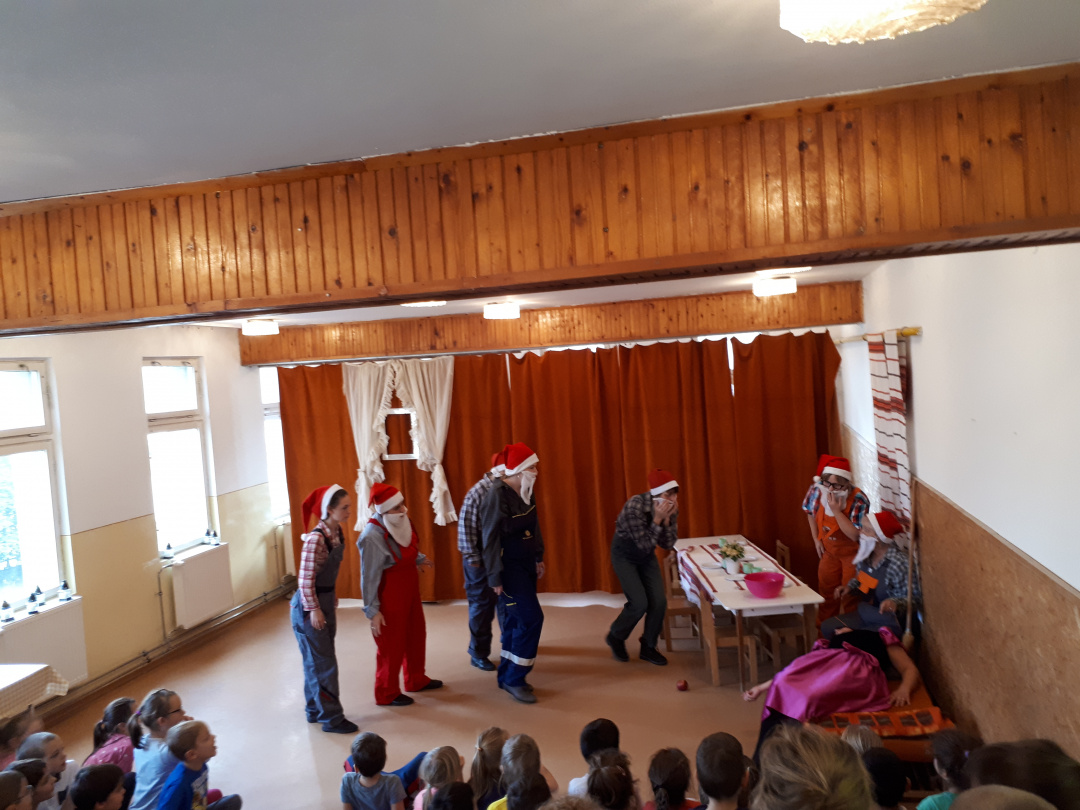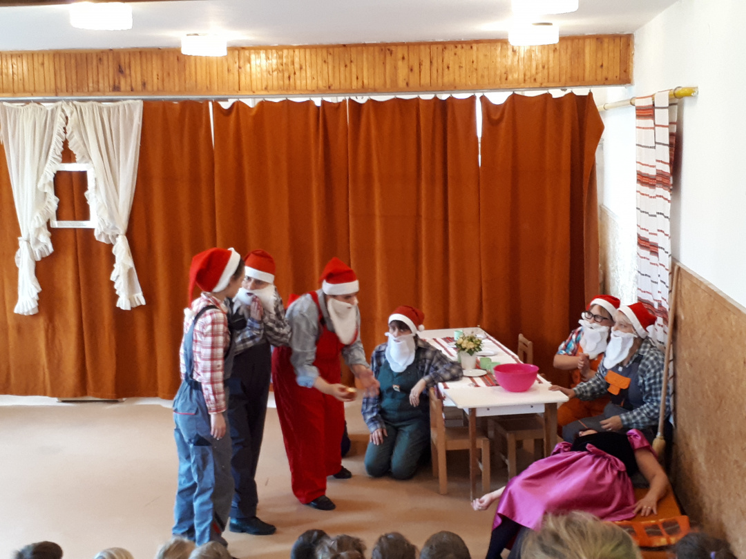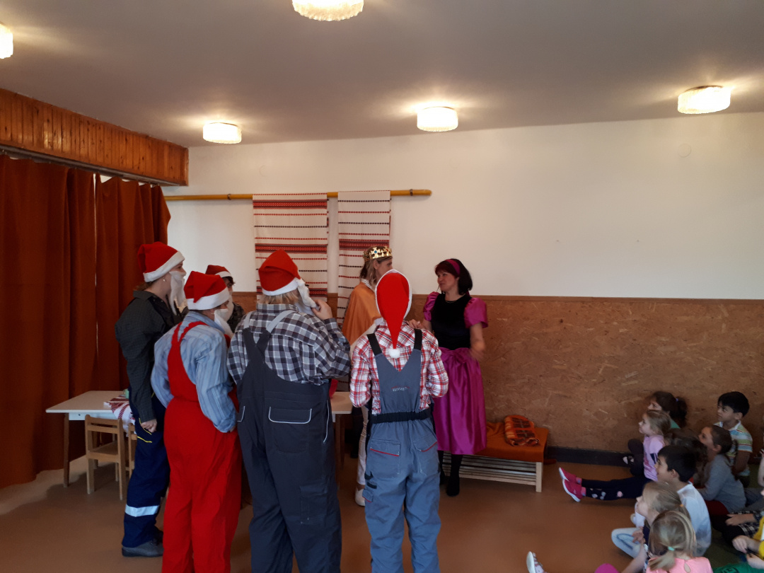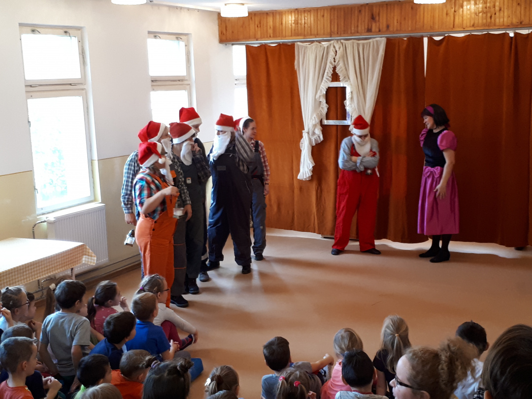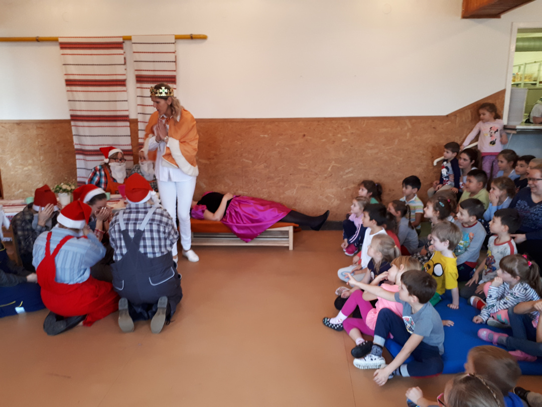 A Szivárvány Tagóvodában másfél évtizede hoztak létre egy színjátszókört az óvónők, aminek a repertoárján a Csipkerózsikától A három kismalacig sokféle népszerű mese szerepel. Ezúttal a Hófehérkére esett a választásuk, és hiába ismerték a gyerekek valószínűleg a mese minden sorát, ott jártunkkor azt láttuk, hogy őszintén drukkolnak és kiabálnak Hófehérkének, meg ne kóstolja a mérgezett almát. Az sem zökkentett ki senkit sem a mese bűvöletéből, hogy a gonosz királyné, Hófehérke, a herceg vagy épp a hét törpe jelmeze alatt jól felismerhetőek voltak azok az óvodapedagógusok, akikkel mindennapjaikat töltik.