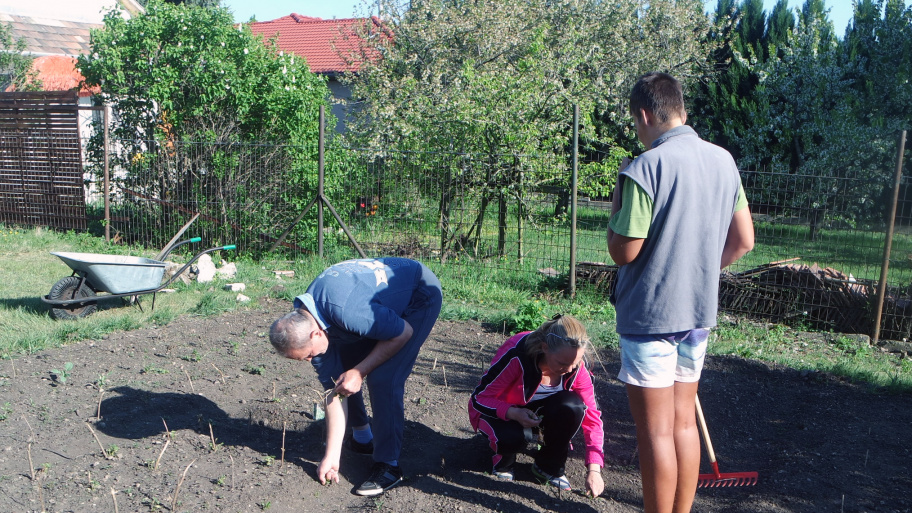 Van olyan lakó, aki nem szeretne beszélgetni. „Most nem érzem jól magam”, mondja egyikük, de a többségük örül annak, hogyha csak több méterről és maszkban is, de beszélgethet. Zoli a büszkeségét, a frissen felásott kertrészt mutatja, ahol zöldséget termesztenek. Lelkesen sorolja a paradicsomfajtákat, szemlátomást örömmel és szakértelemmel kertészkedik, és a dicsérettől olyan boldog, mint egy gyerek. Nagy területet ásott fel, és a többi lakóval együtt ültetett a paradicsomon kívül babot, karalábét, hagymát. „Van tízezer forintom, azon szeretnék még palántákat venni” – mondja lelkesen. A kiskertben egy szál gaz sincs, rendszeresen öntözik. A kert hatalmas, jut hely annak is, aki szeretne egy kicsit elkülönülni. Feri például sokat napozik, már most olyan barna, mintha nyár vége lenne. A mosolygós fiatalember is ugyanott dolgozik, mint Elvira, és rendszeresen jár a Harmóniáért Egyesület fentebb említett, most szünetelő foglalkozásaira is. „A munka nem hiányzik annyira. Reggel tornázom a szobában, és a kertben is sokat sétálok, olvasok. Igazából jól telik a napom. Ami hiányzik, hogy találkozhassak a szüleimmel, és ne csak telefonon tudjunk beszélni” – teszi hozzá.