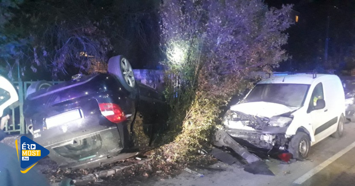 Parkoló gépkocsiknak ütközött és felborult egy autó Érden