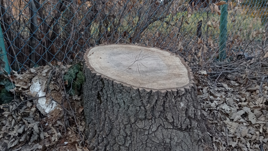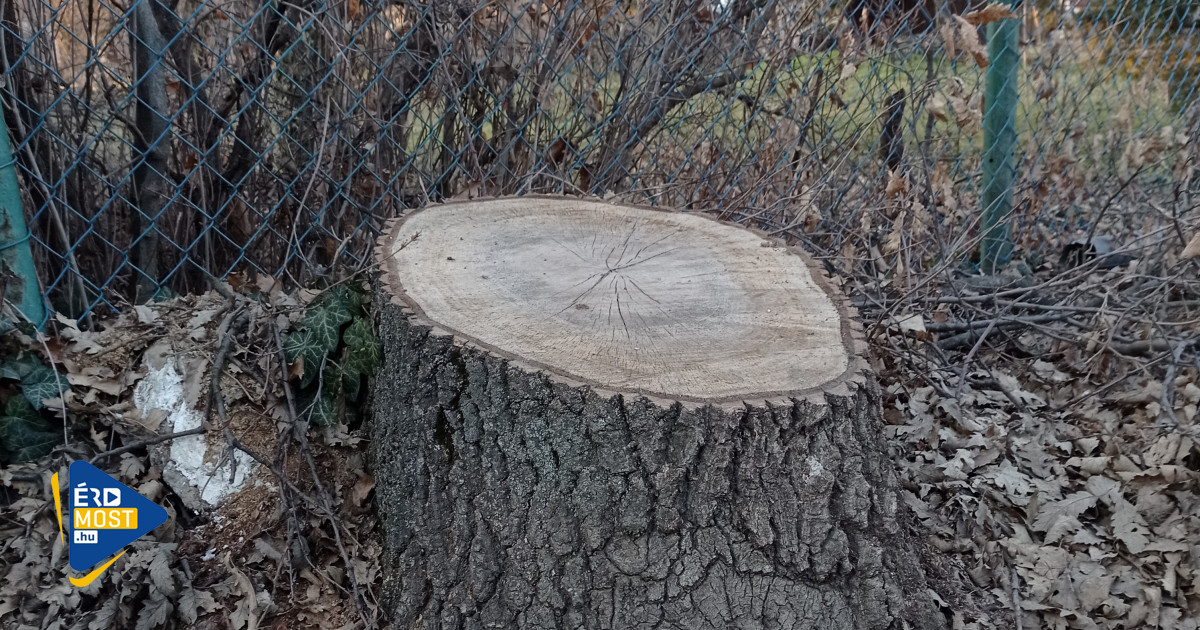 Megállunk egy farönknél. Közterületen állt a tölgy, villanyvezeték sem volt felette, mégis kivágták. Márta szerint azért, mert a tulajdonost zavarta, hogy túl közel van a kerítéshez. „Nagyon sokat sétálok a környéken, látom, hogy lesz egyre kevesebb és kevesebb a fa a telkeken. Ezért aztán madár is jóval kevesebb van, mint régen. Máskor kora tavasszal már zenebona volt, most alig hallani füttyszót. Eltűnik Érdligetről a madárdal.”