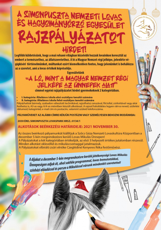 Kérik, hogy a pályaműveket a 2030 Érd, Simonpuszta Lovaspark Hrsz.: 0134/1 címre küldjék el 2021. november 30-ig.