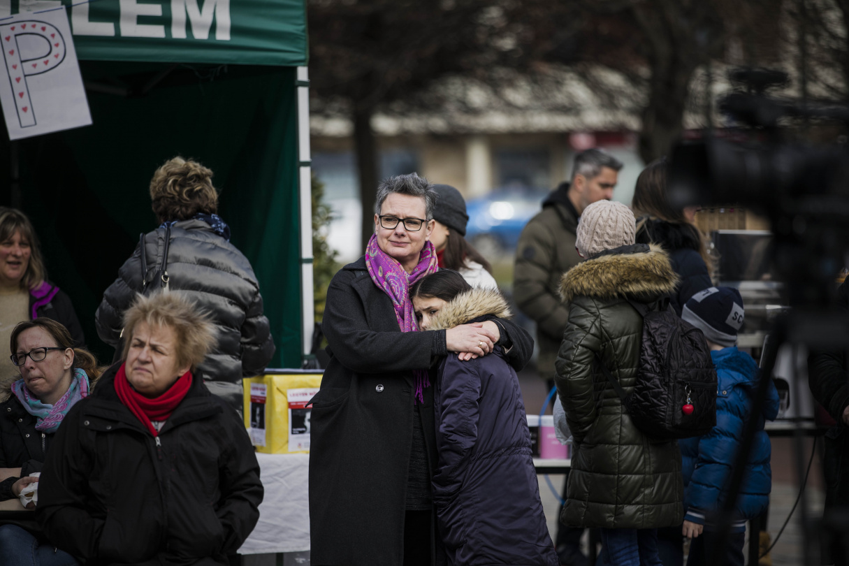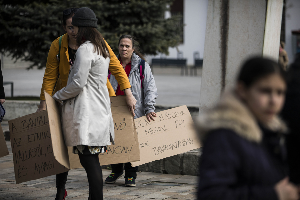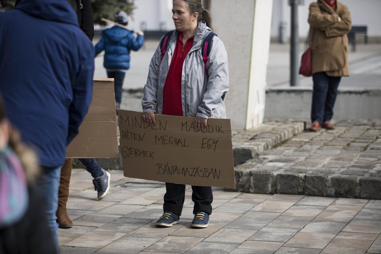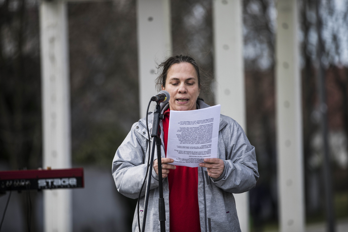 Pintér Marianna Manka, akit a gyerekkorától fosztottak meg saját szülei, és aki azóta a gyerekbántalmazás és a családon belüli erőszak egyik nagy élharcosa lett, saját történetét mesélte el a téren álldogálóknak. Mankának - bár nagyon sokan tudták a környezetében és a hatóságoknál - annak idején senki nem segített, senki nem mentette meg, hogy ne tiporják el testét, lelkét. Épp ezért a túlélők jogán arra hívta fel beszédében a figyelmet, hogy mindenki cinkos, aki bár tud róla, mégsem tesz semmit a bántalmazás ellen.