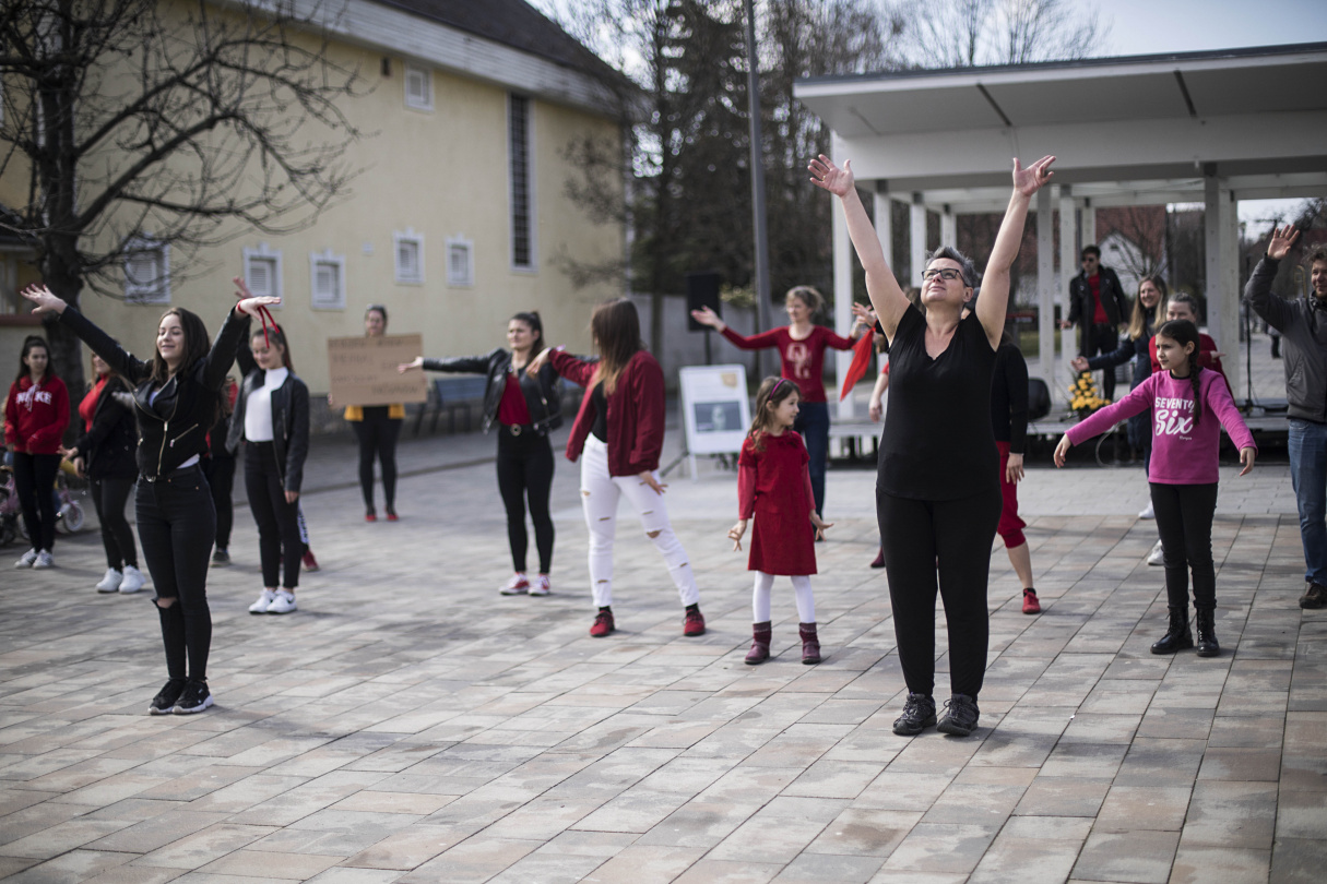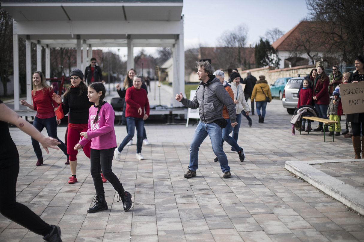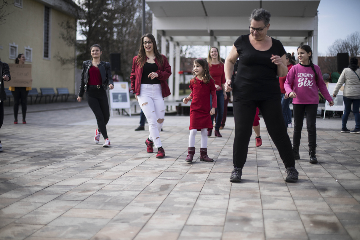 A beszédek mellett persze volt műsor is: energiabomba robbant a téren JP Dance Company táncosaiban, akik kitörő lelkesedéssel irányították a táncpróbát, majd a flash mobot is. És ha ők egyszer kedvet csináltak a tánchoz, a Piros cipellők koncertje ezt az irányt vitte tovább. Dakos Lilláék fülbemászó és táncra perdítő zenét hoztak a nőnapba. Végül a flash mobon Érden is eljárták azt a táncot, amit világszerte lányok és nők táncolnak az erőszakkal szembeni fellépést sürgetve.