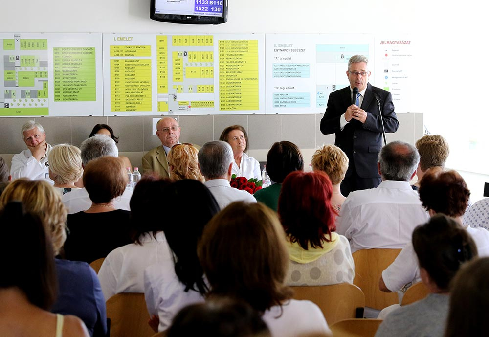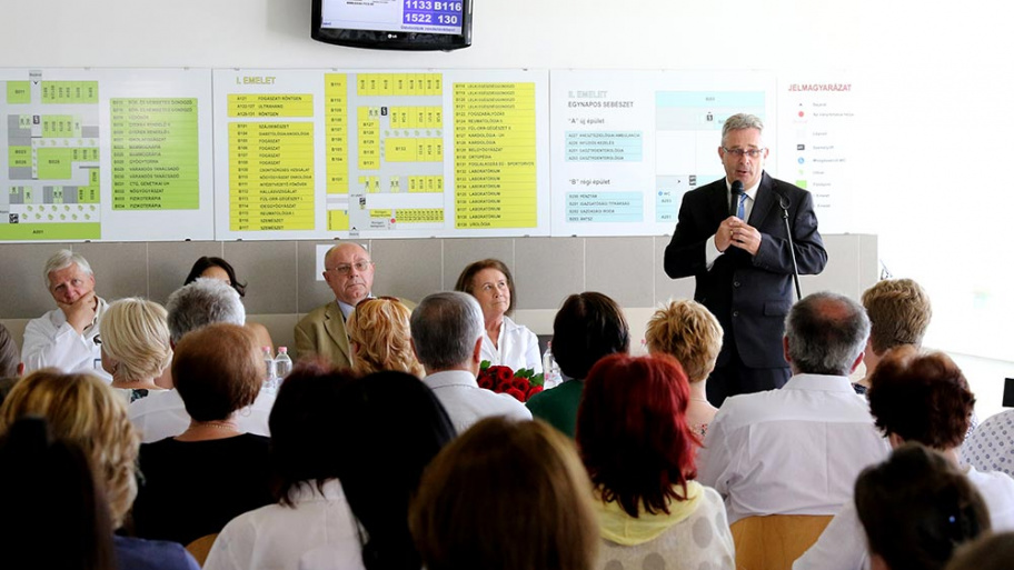 Bárány Zsolt ugyancsak köszönetet mondott az eseményen az itt dolgozóknak lelkiismeretes munkájukért és azért a türelemért és kitartásért, amivel a felújításokat kezelték. Hozzátette, hogy nagyon sokan már a saját végleges helyükön működnek, emellett tudják állítani a termek hőmérsékletét, és a tüdőgondozó is visszatérhet szeptember elejétől a Felső utcába.