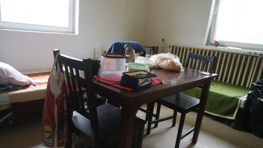 Átlagos őszi reggel. Az udvaron száradó ruhák, odabent itt-ott még a reggeli nyomai. A szálláson nagy a csönd, aki otthon van, az az egy napja újra megnyílt nappali melegedőben üldögél, a hatalmas, modern tévé előtt. Jó helyre érkezett ez az adomány, segít elütni az üres órákat. A melegedő hónapokig zárva volt, november 9-én nyitotta meg ismét az egység újonnan megbízott vezetője, Stehlik Krisztián. A nappali melegedőt nemcsak a szállón élők vehetik igénybe, hanem a rejtett hajléktalanságban élők is, akiknek fedél ugyan van a fejük fölött, de nincs fűtésük, áramuk, vizük, sem elegendő élelmük, hogy kihúzzák a telet. Aki ide betér, az ebédre meleg ételt is kap, ugyanazt és ugyanonnan, mint az iskolák, óvodák. Minden hétköznap harmincöt adag ebéd érkezik, azoknak is jut tehát, akik nem a szállón laknak.