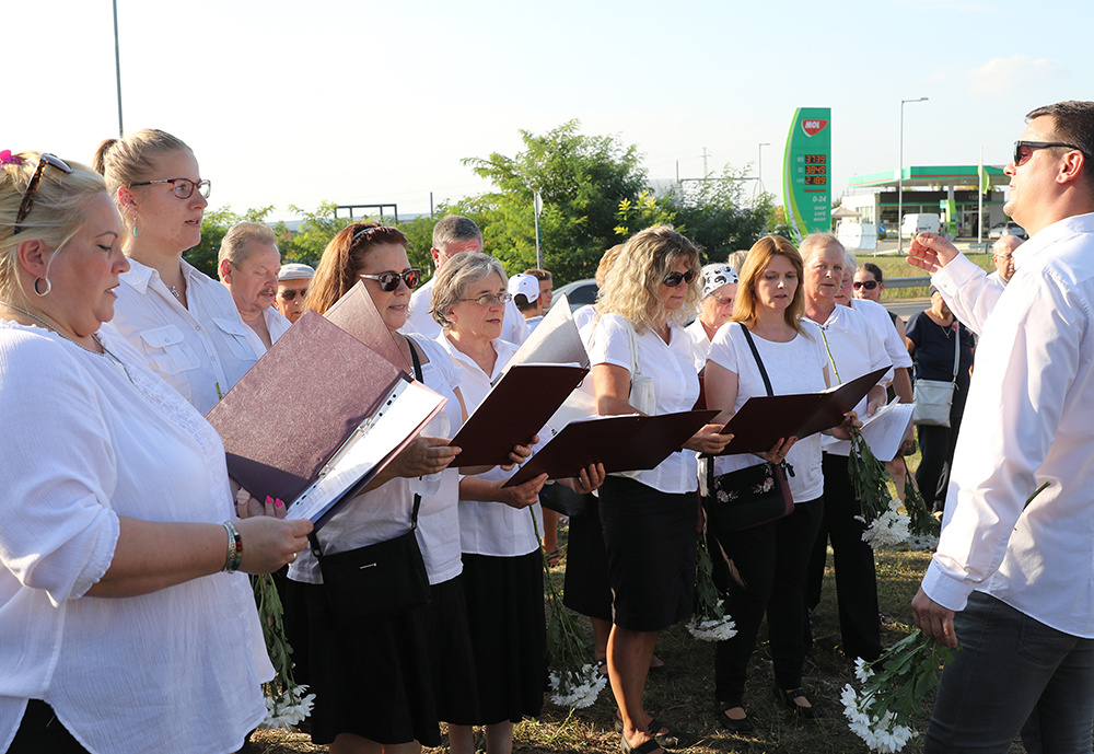 A megemlékezésen fellépett a Rosenbrücke Német Nemzetiségi Énekkar, illetve Eszes Vendel és Eszes János elhurcoltak visszaemlékezéseit a dédunokák, Kapuvári Márk és Kapuvári Márton idézték fel. A megemlékezést követően az összegyűltek elhelyezték az emlékezés koszorúit és virágait a keresztnél.