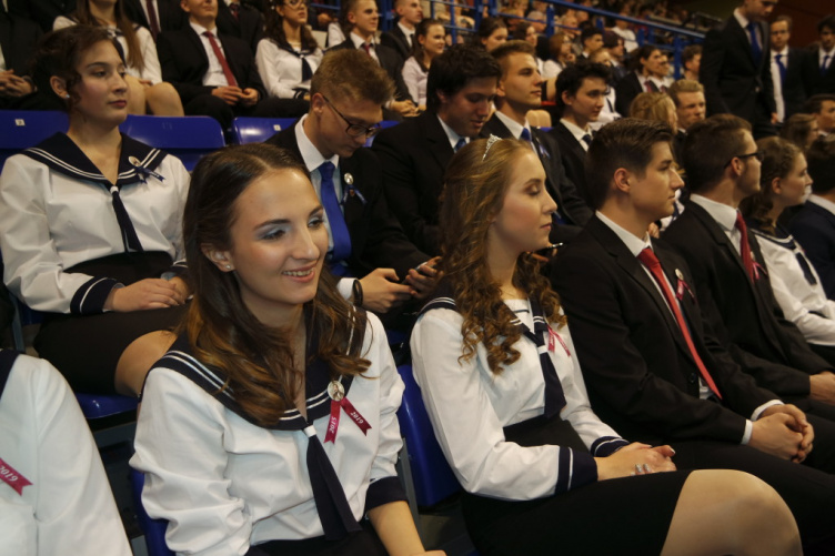 A szalagavató ünnepségnek megvannak a hagyományai a Vörösmarty gimnáziumban. Az osztályfőnökök tűzték fel az iskolához való kötődést jelképező szalagot, név szerint megszólítva a diákokat. Az osztályok kisfilmekkel búcsúztak, majd a táncok bemutatása következett a lelátón helyet foglaló szülőknek, tanároknak, barátoknak.