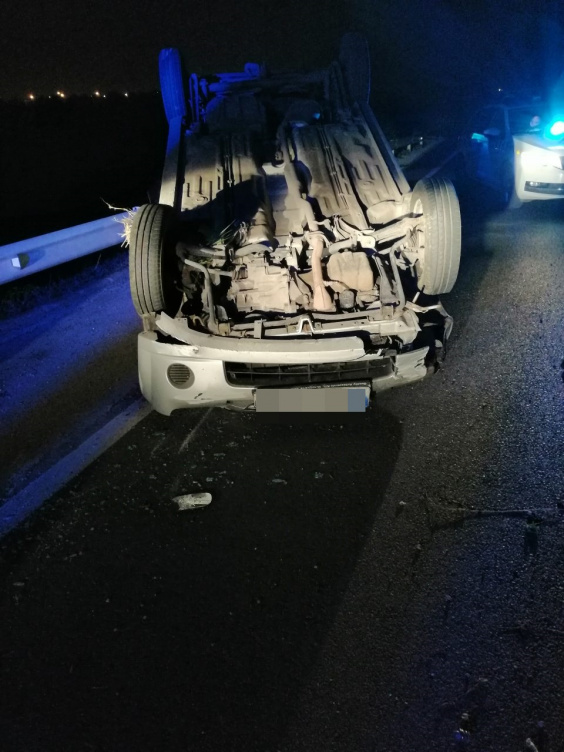 Szalagkorlátnak ütközött, majd felborult egy személyautó vasárnapra virradóra a 6-os főút 33-as kilométerénél, Ercsi közelében.