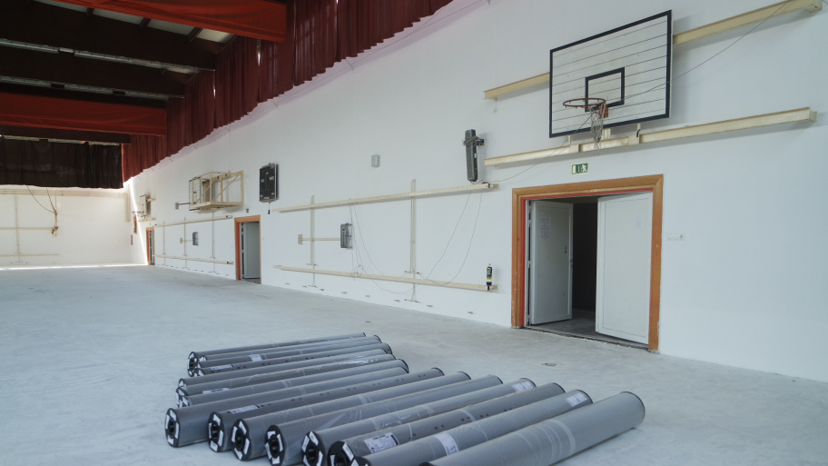 A víz nemcsak a parkettát tette tönkre, hanem a lábazatot is eláztatta, felszivárgott a falakba. Majdnem fél méter magasan le kellett szedni a vakolatot, kiszárítani, újravakolni. Ehhez az összes radiátort, bordásfalat el kellett távolítani. Ezt a munkát az idő alatt végezték el, míg az aljzat előkészítése zajlott. A csarnok küzdőterét teljes egészében újrafestették.