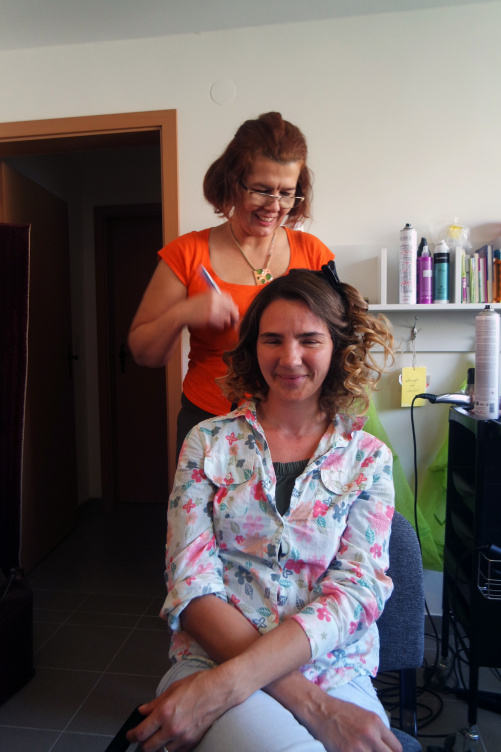 „Hatalmas mennyiségű szeretetet, hálát kapunk. Akik rendszeresen járnak fodrászhoz, természetesnek veszik, hogy szép frizurával távoznak, de ezek közt az anyukák közt van, aki utoljára az esküvőjén nézett ki így. A szemük csillogása mindent megér!” – mondta az egyik fodrász, Lőrincz Gabriella, aki társával alkalmi frizurát varázsolt a hölgyeknek.