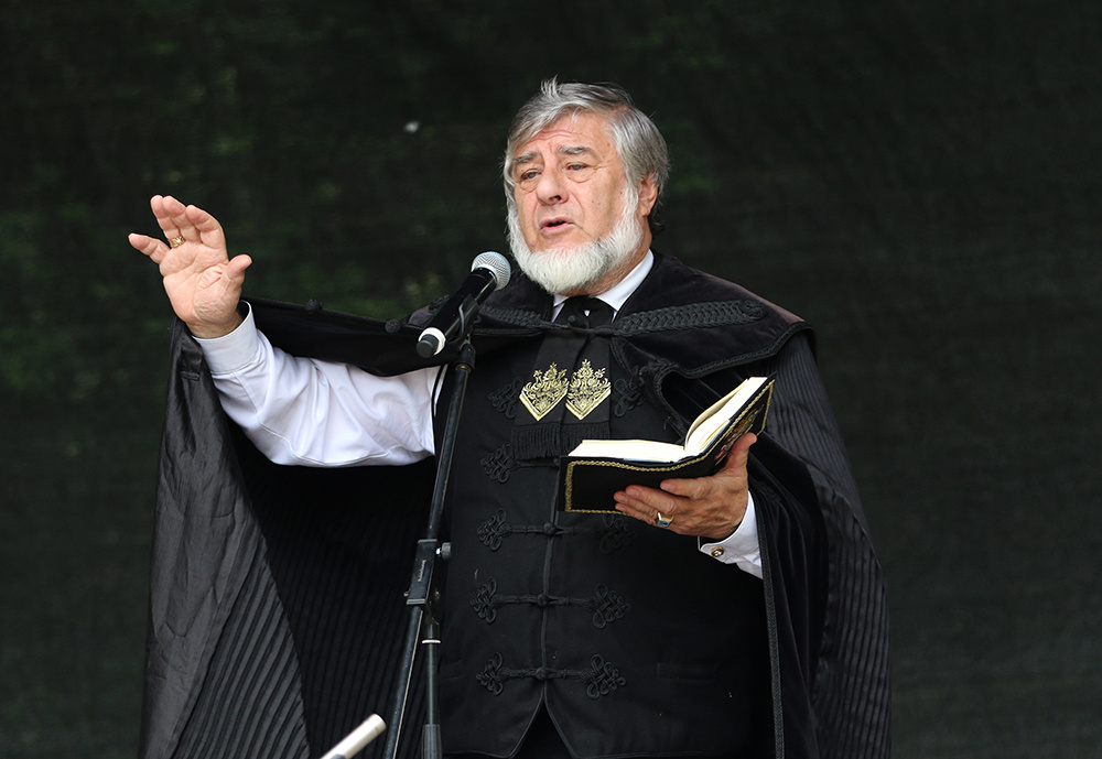 -Virágzik a szőlő, ez azt jelenti, hogy az új termés útjára kél, elindul, és ebből a termésből előbb-utóbb finom borok fognak születni - kezdte később köszöntő beszédét az Érdi Pincetulajdonosok Egyesületének elnökhelyettese, Martonosi Tamás. - A Szentatya Csíksomlyón, az összmagyarság szent kegyhelyén celebrált misét. Mi, Érden egy kicsit más jelleggel állunk a nemzetiségi ünnep elé: az Érden élő nemzetiségek összességét fogjuk össze ezzel az ünneppel, és nagy-nagy szeretettel köszöntjük őket itt immáron 12. alkalommal - tette hozzá az egyesület elnökhelyettese.
