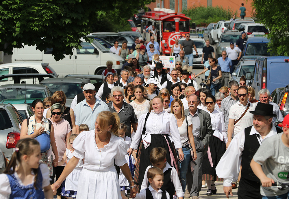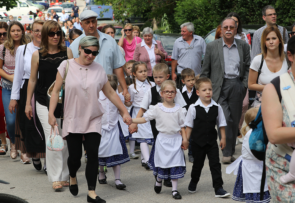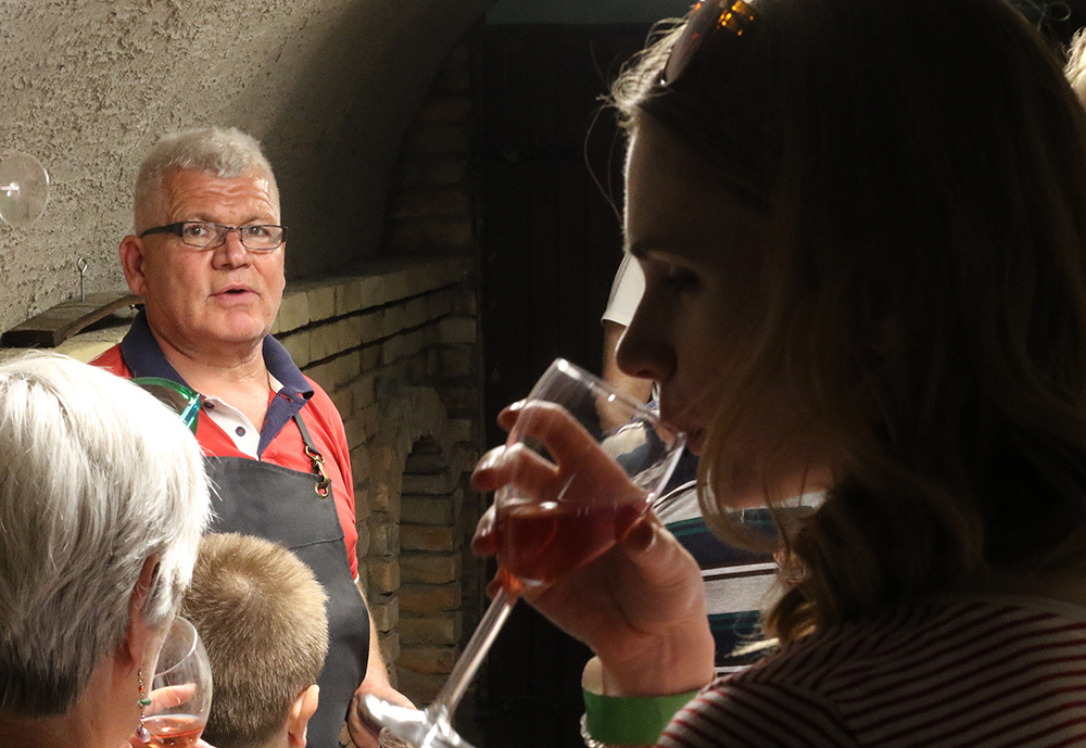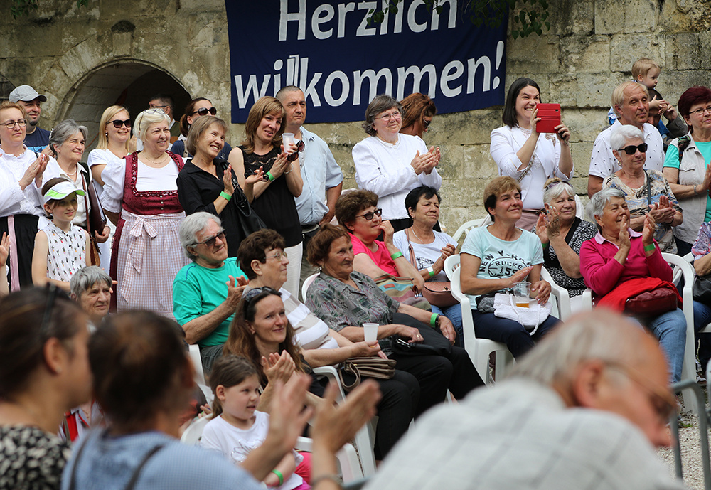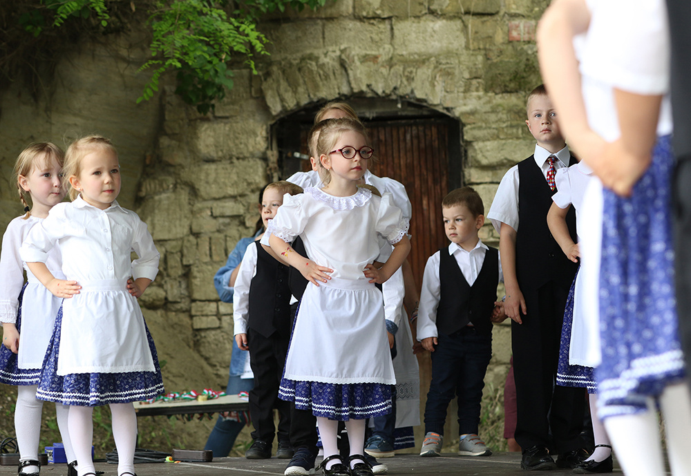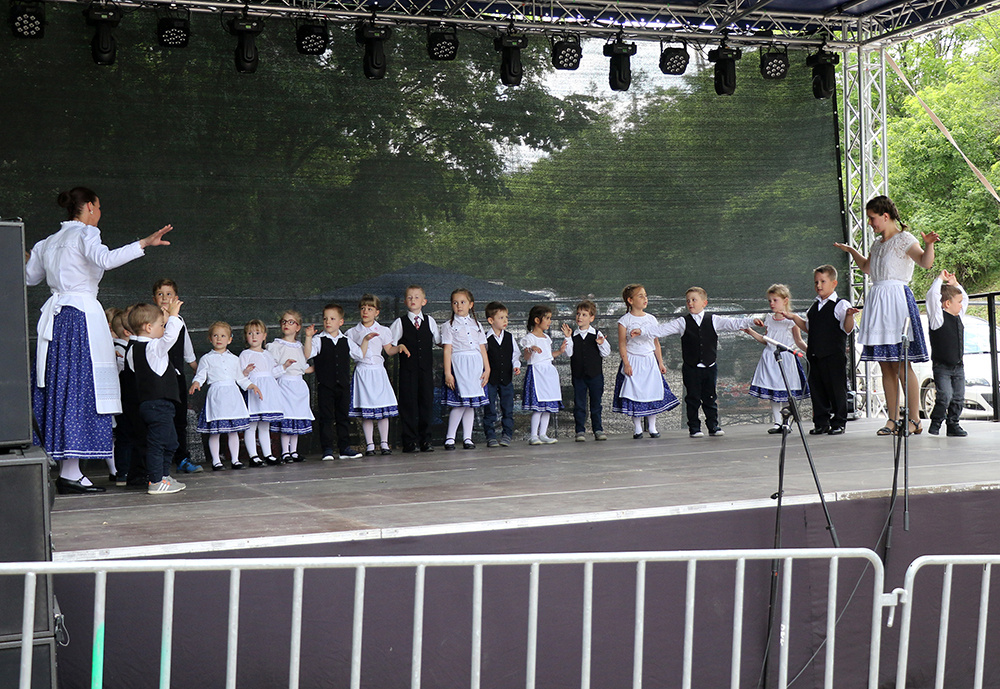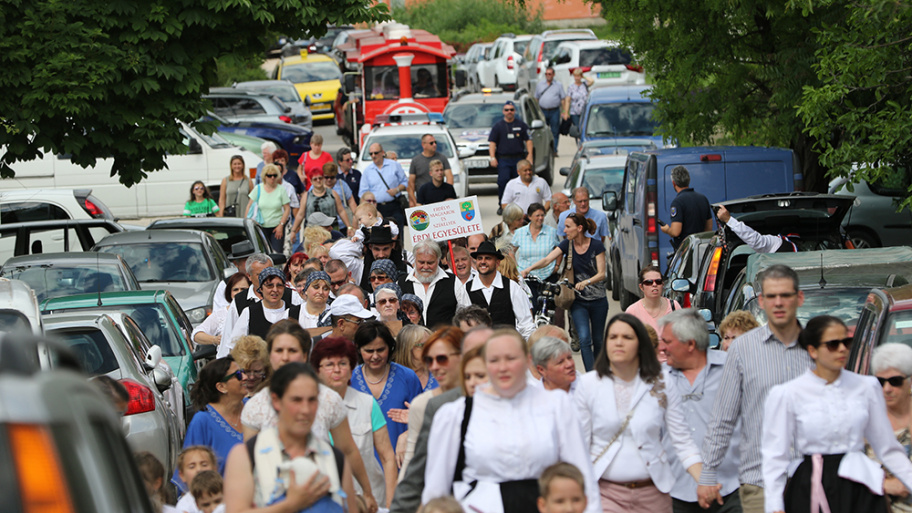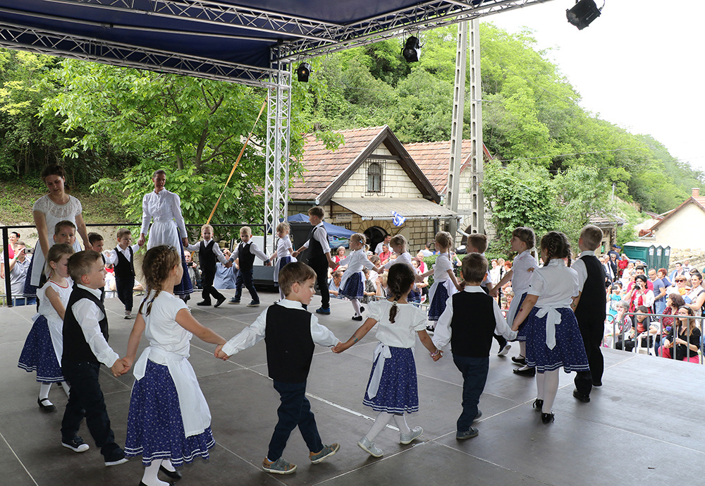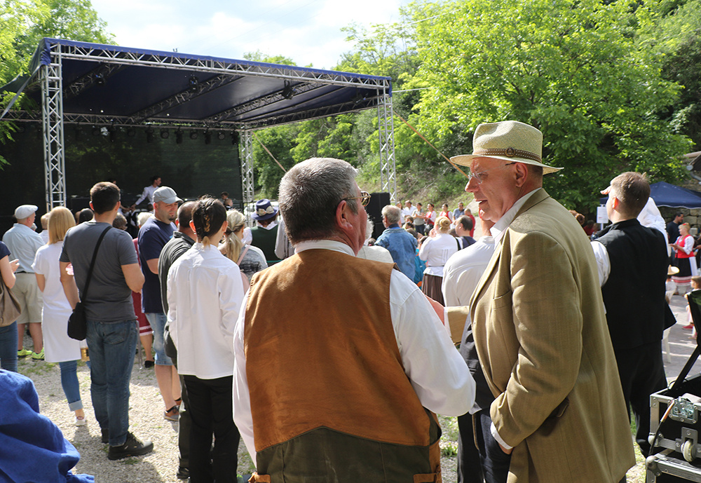Aztán délután már egyre többen érkeztek az ide közlekedő kisvonattal, lassan megtelt a pincesor, és a nemzetiségek felvonulásával megkezdődött a nemzetiségi találkozó is. Erdélyi-Takács István református lelkész áldása után a Pumukli Német Nemzetiségi Óvoda bűvölte el produkciójával a közönséget, majd T. Mészáros András polgármester köszöntötte az egybegyűlteket.