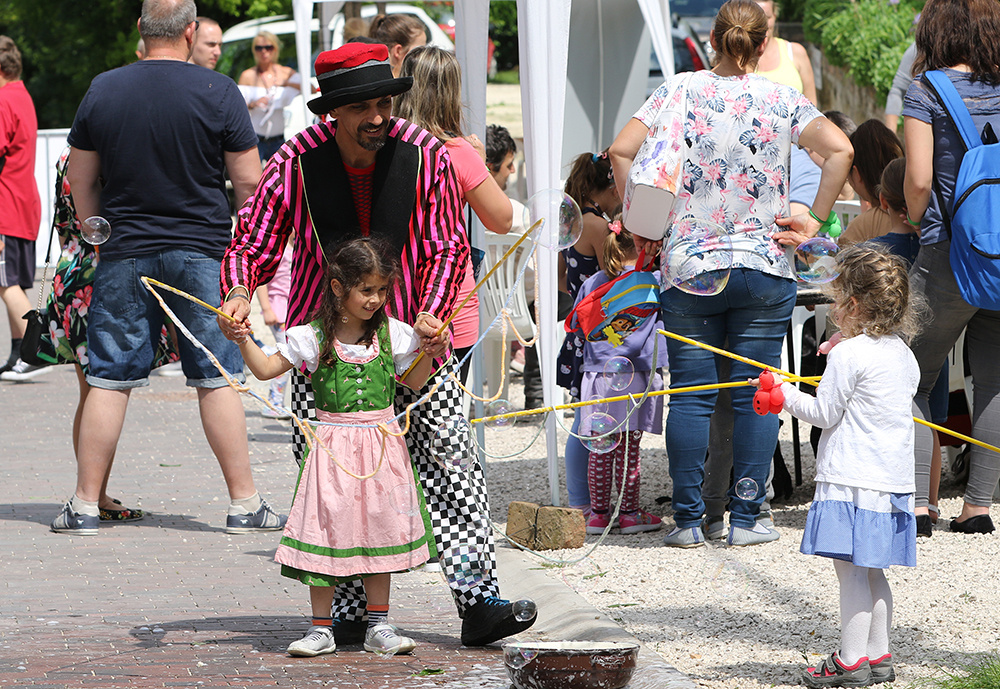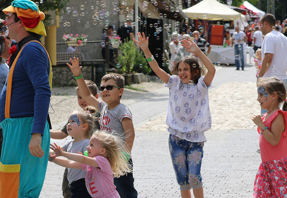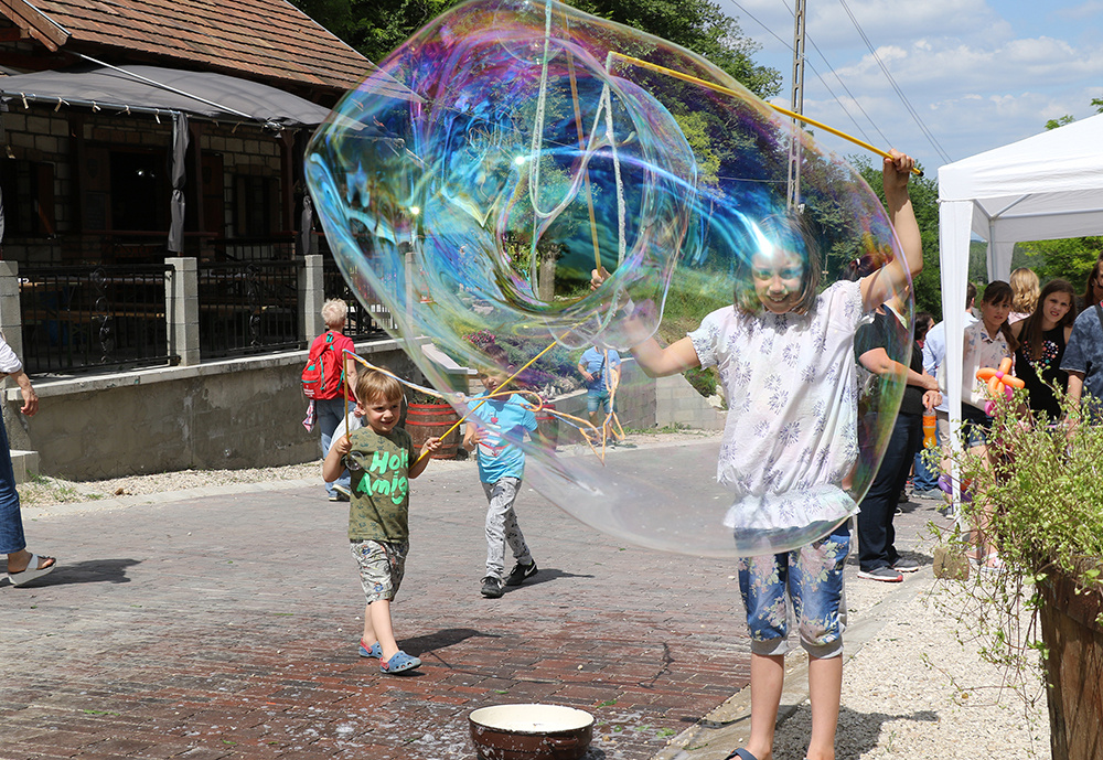 Szálltak a buborékok a már délelőtt szikrázó napsütésben a pincesor egyik végéből a másikba. Nem is akármilyen buborékok voltak ezek, jórészükben bőven elfértek volna azok a gyerkőcök, akik hajtották ezeket. Mert a buborékban az a buli, hogy ki lehet pukkasztani, és aztán zúdul az egész szappanos víz az ember gyerekének a fejére, hátára. Kész csoda, hogy az arcokra felkerült műalkotások (pillangók, cicusok, virágcsokrok, és még hosszan lehetne folytatnia sort) makacsul ellenálltak a víznek, és nem kenődtek el.
