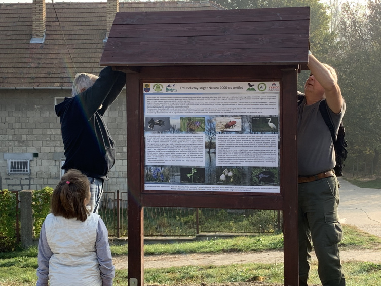 A környezetvédő arról is beszélt, hogy egyesületüknek célja továbbá, és van is erre egy láthatósági programjuk, hogy a háttérben zajló környezetvédelmi tevékenység mellett olyan dolgokat is elérjenek, ami maradandó. Mint például egy ilyen tábla, amiből már több is van a szigeten, de felújításra szorulnak. Palkó Zsolt azt is elmondta, hogy még több ilyen táblát szeretnének állítani Érd már természetvédelmi területeire is.