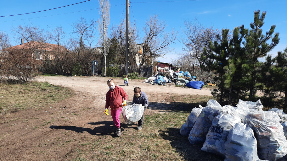A Zólyomi utcánál egyébként szombat reggel 9 órakor kezdték a munkát, körülbelül 20 fő. Ez néhány családot jelent, de többen érkeztek kisgyerekkel, akik szintén kivették a részüket a munkában: szedtek, kupacoltak, dobták ki a hulladékot a konténerekbe, amelyet a hétvégén az ÉTH fog elszállítani.