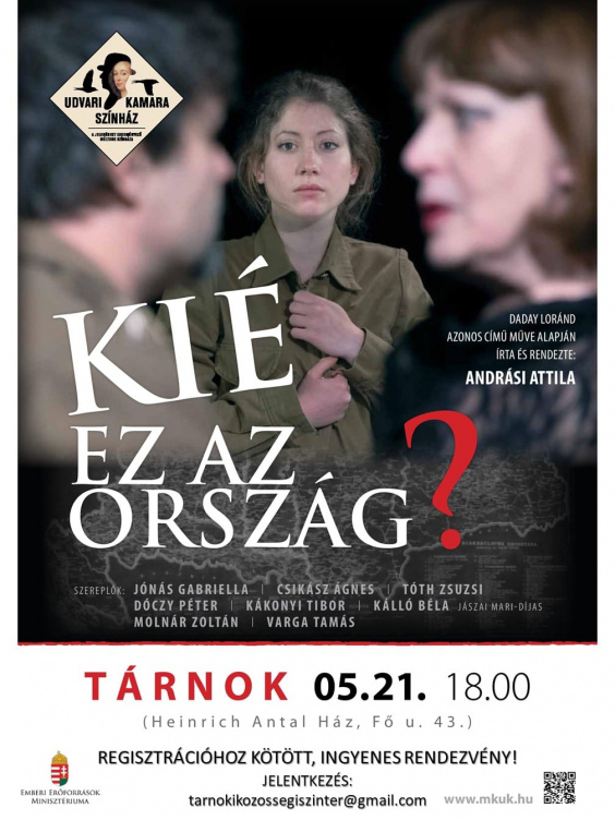 Ingyenes színházi előadást rendeznek a Heinrich Antal Házban: Az Udvari Kamara Színház hozza el a Kié ez az ország című darabot. A részvétel regisztrációhoz kötött, jelentkezni május 20-áig lehet a tarnokikozossegiszinter@gmail.com címen. A program csak védettségi igazolvánnyal látogatható.