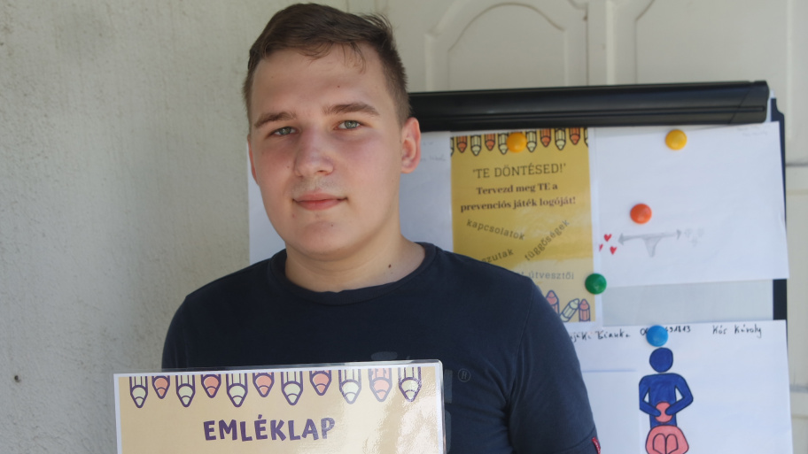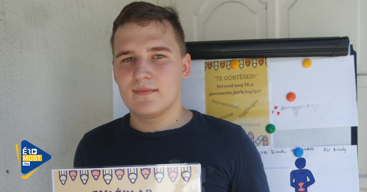 – Mindig megragadom a különféle pályázati lehetőségeket, és nagy öröm számomra, hogy most nyertem. Azt próbáltuk ábrázolni nyilak és szívek segítségével, hogy a függőségekből van kiút – rajtunk áll a döntés, melyik utat választjuk, a lefelé vagy a felfelé vivőt. Szerencsére én még nem kerültem ilyen választás elé, és nem is fogok, mert nem szeretnék kipróbálni semmilyen szert – mondta a tizennyolc éves fiatalember, aki a kortársai körében leginkább az alkoholfogyasztást tartja veszélyforrásnak, mert azt nagyon sok diák szeretné kipróbálni, sőt, van olyan érintett osztálytársa is, akin megpróbálnak segíteni.