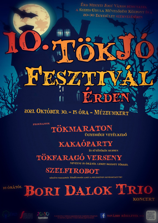 A hagyományos programok – tökfaragás, kakaóparty, ügyességi verseny és Tökmaraton – mellett a szervezők színes programokkal készülnek, többek közt szelfirobottal (a fotókat a helyszínen ki is nyomtatják), 18 órától pedig a BORIDALOK Trió koncertjével.