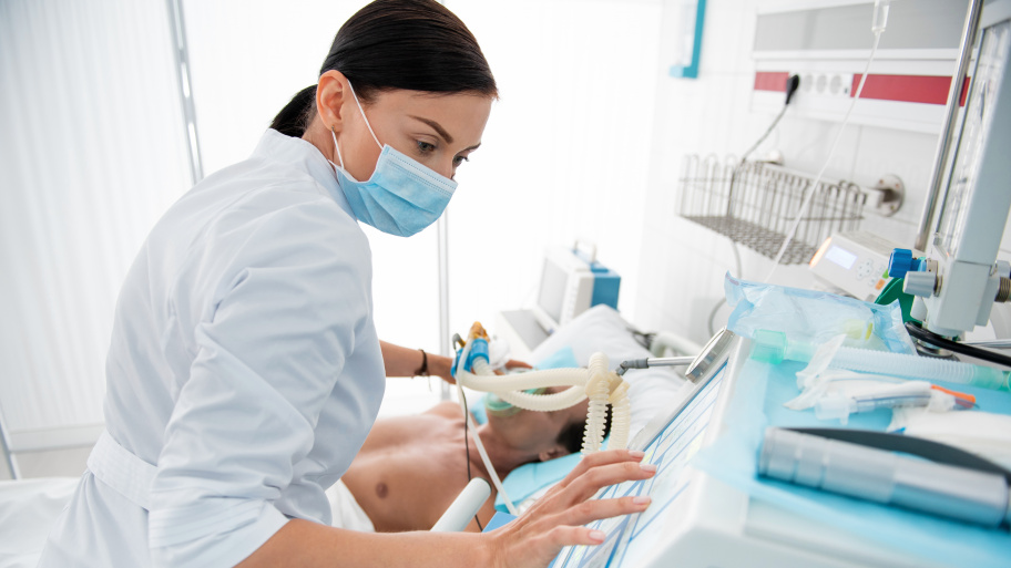 A gázcsere a tüdő felszínén keresztül zajlik. Amikor az oxigén bekerül az érrendszerünkbe, oxigéntelítettséget okoz, amit százalékos arányban szokás kifejezni. Ez az arányszám a véroxigénszint, ami normál esetben 98-100 százalék között mozog. Ha azonban a vírusfertőzés következtében sérül a tüdő, a légzőfelszín jelentősen csökken, így jóval kisebb felületen tud működni a gázcsere. Ez meg is jelenik az említett százalékos arányban, amit szaturációnak hívnak. „Ha a szaturáció 87 százalék alá csökken, oxigénterápiára szorul a beteg, ilyenkor 100 százalékos oxigént kap, és figyelik, milyen szinten nő a telítettség. „Ha egyre nagyobb területet ér el a károsodás és egyre kisebb az a terület, ahol a gázcsere meg tud történni, akkor kerül lélegeztetőgépre a páciens.” Egy úgynevezett tubust helyeznek a légcsövébe és túlnyomással juttatják be a 100 százalékos oxigént a szervezetbe. A beteget a gépi lélegeztetés során végig mély áltatásban tartják, aki ez idő alatt nem érzékel semmit a külvilágból. „A gép biztosítja a megfelelő oxigénellátást, amire egyébként két szervnek van elsősorban szüksége: az ember szívének és agyának”.